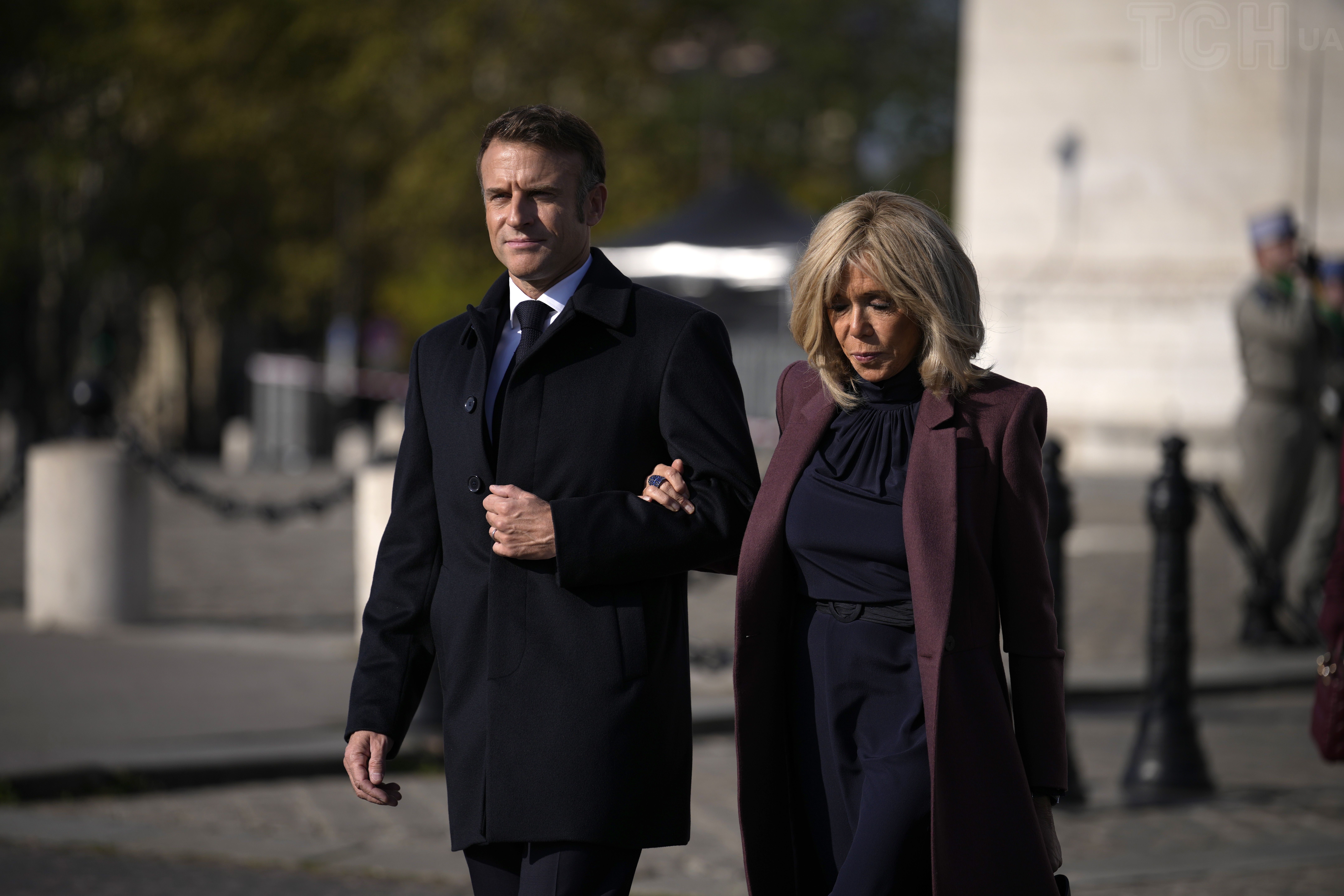 В баклажановом пальто и на высоких шпильках: элегантная Брижит Макрон на церемонии в Париже