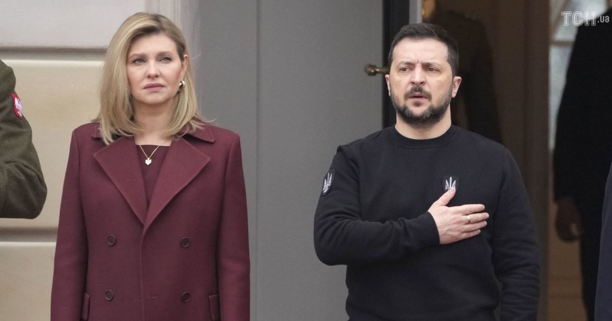 В бордовом пальто и с гербом на шее: Елена Зеленская с мужем приехала в Польшу