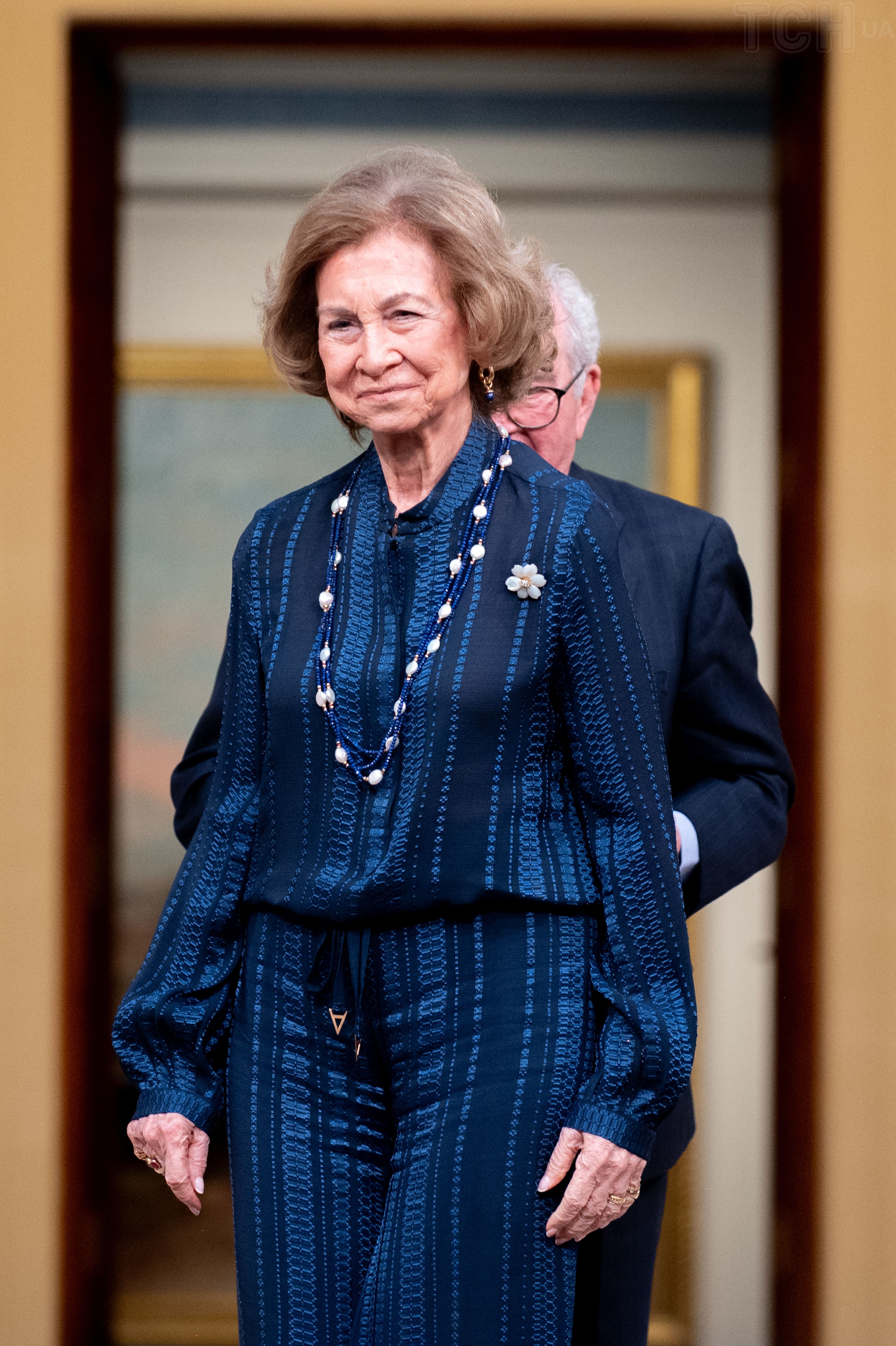 В брючном костюме и с цветочной брошью: королева София вышла в свет