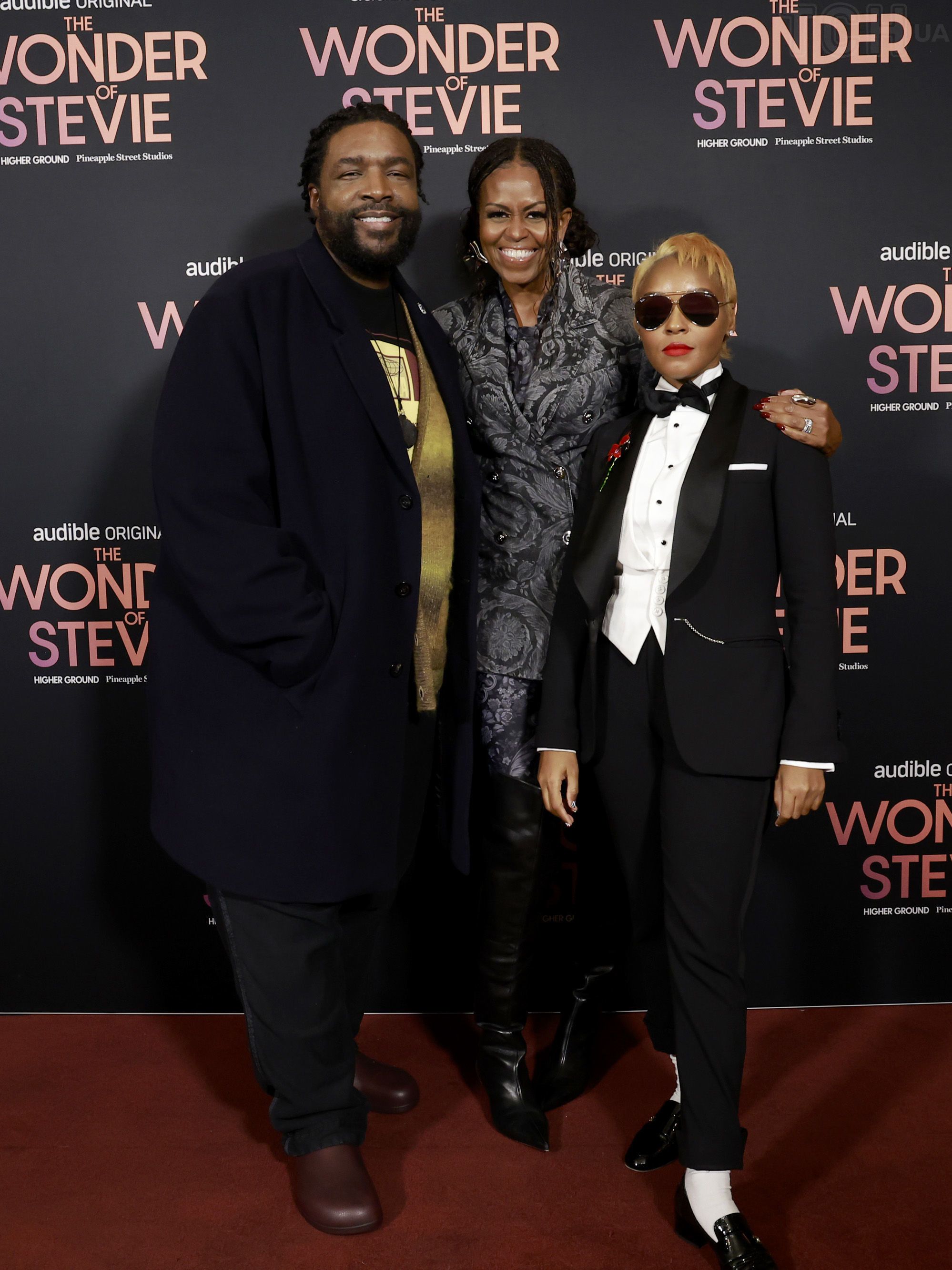 Во время мероприятия Обама позировала с музыкантом и продюсером Questlove и актрисой Жанель Монэ / © Getty Images