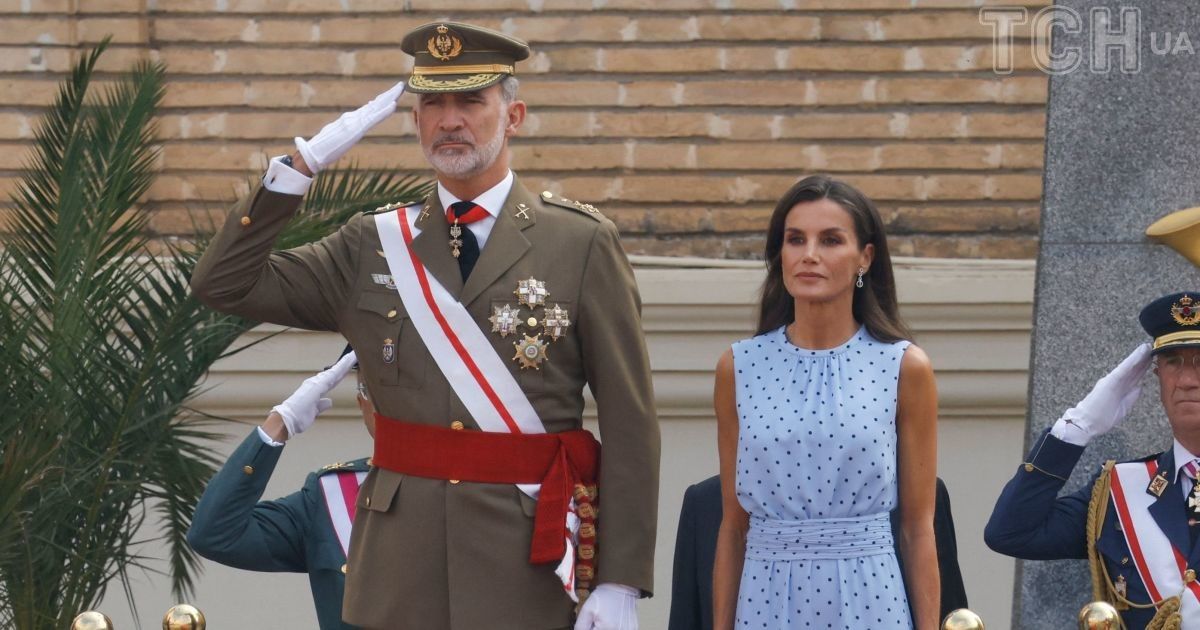 В голубом платье в принт polka dot: король Филипп VI и королева Летиция на присяге своей дочери