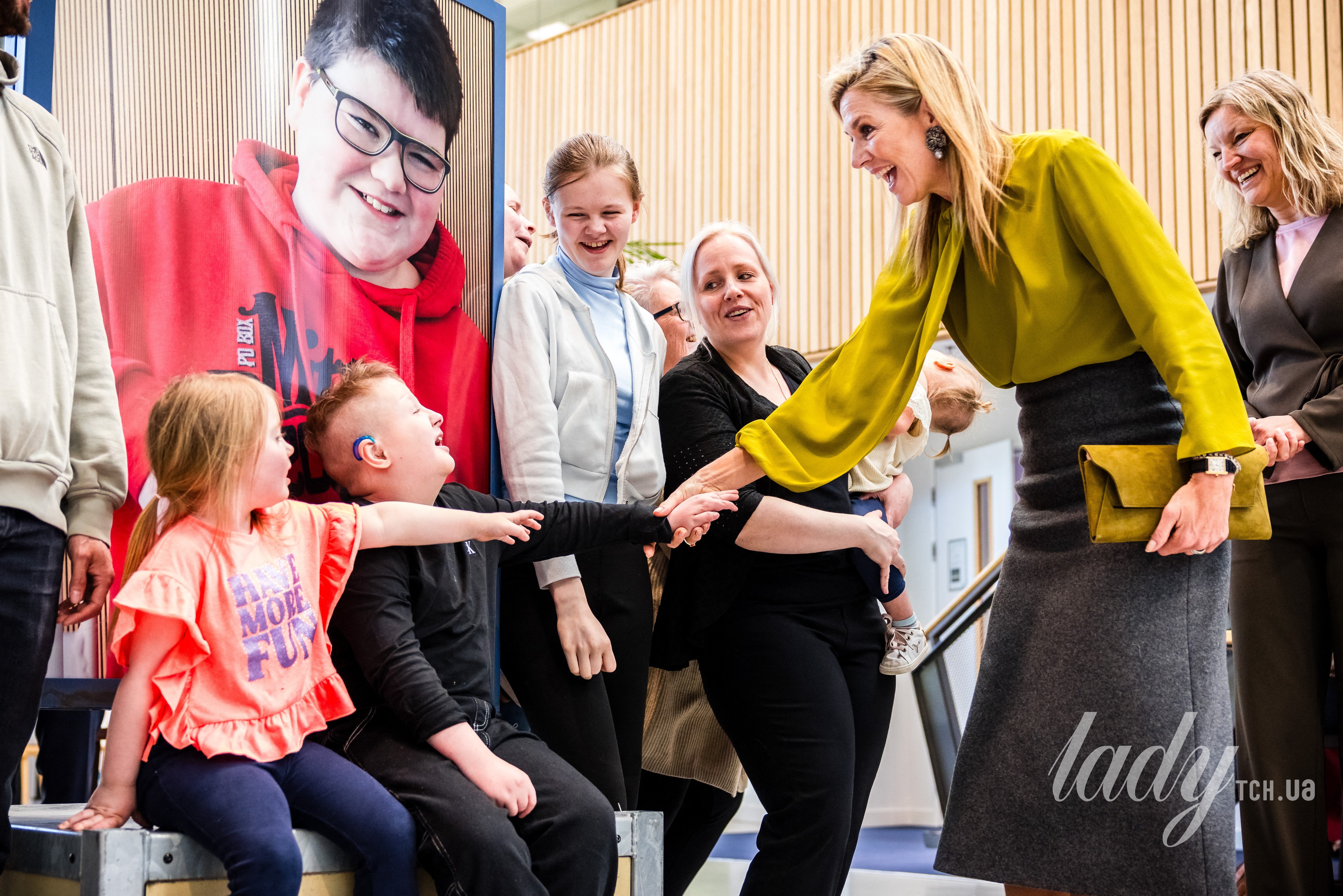 В горчичной блузке и серой юбке: стильная королева Максима посетила медицинский центр
