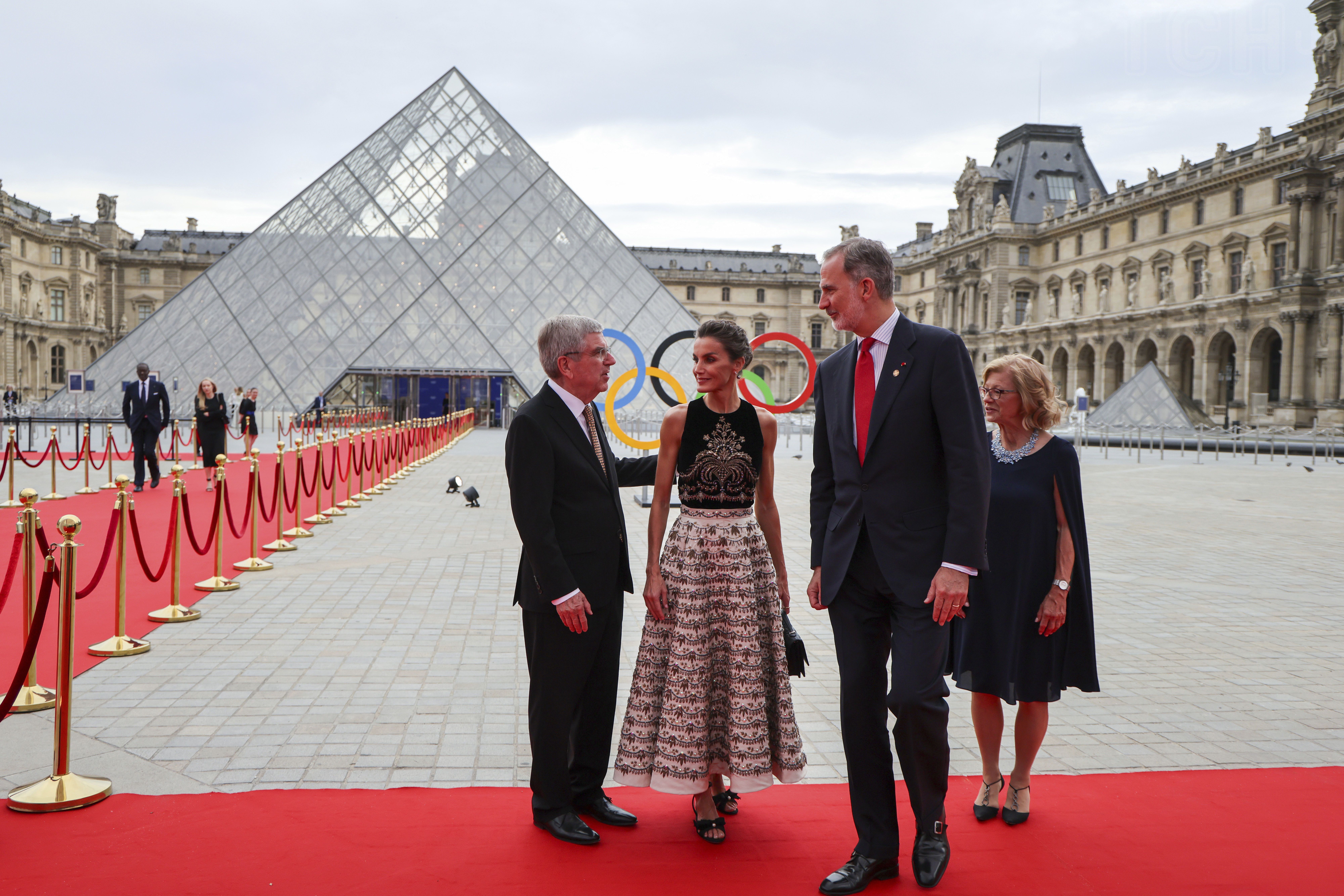 Король Филипп VI и его супруга королева Летиция присутствовали вчера на ужине МОК в Лувре, в Париже, перед церемонией открытия Олимпийских игр 2024 года, которые стартуют 26 июля, в пятницу.