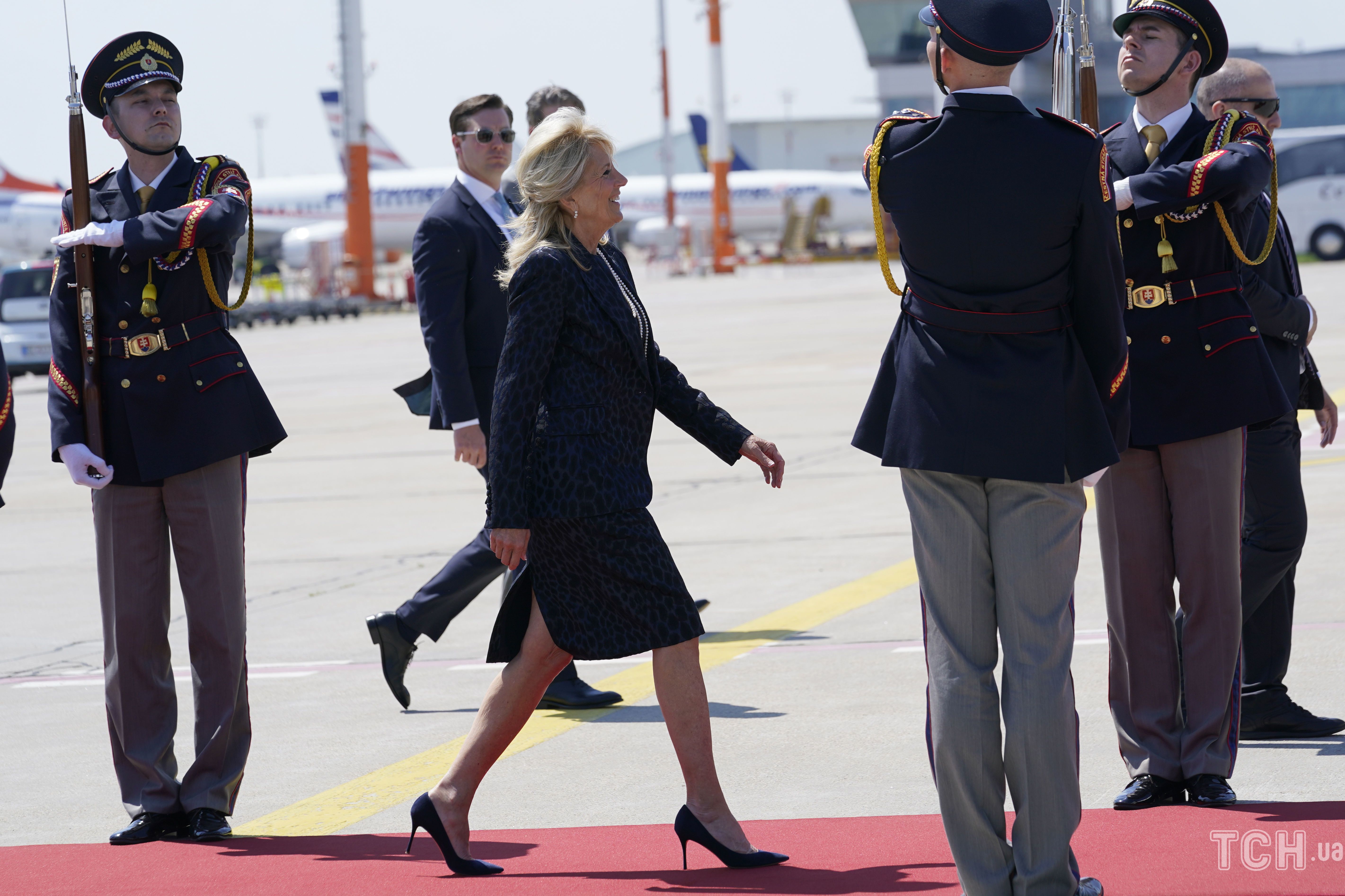 После встречи с президентом Словакии госпожа Байден уехала в аэропорт, откуда улетела домой, в Вашингтон. На прощание она мило помахала рукой.