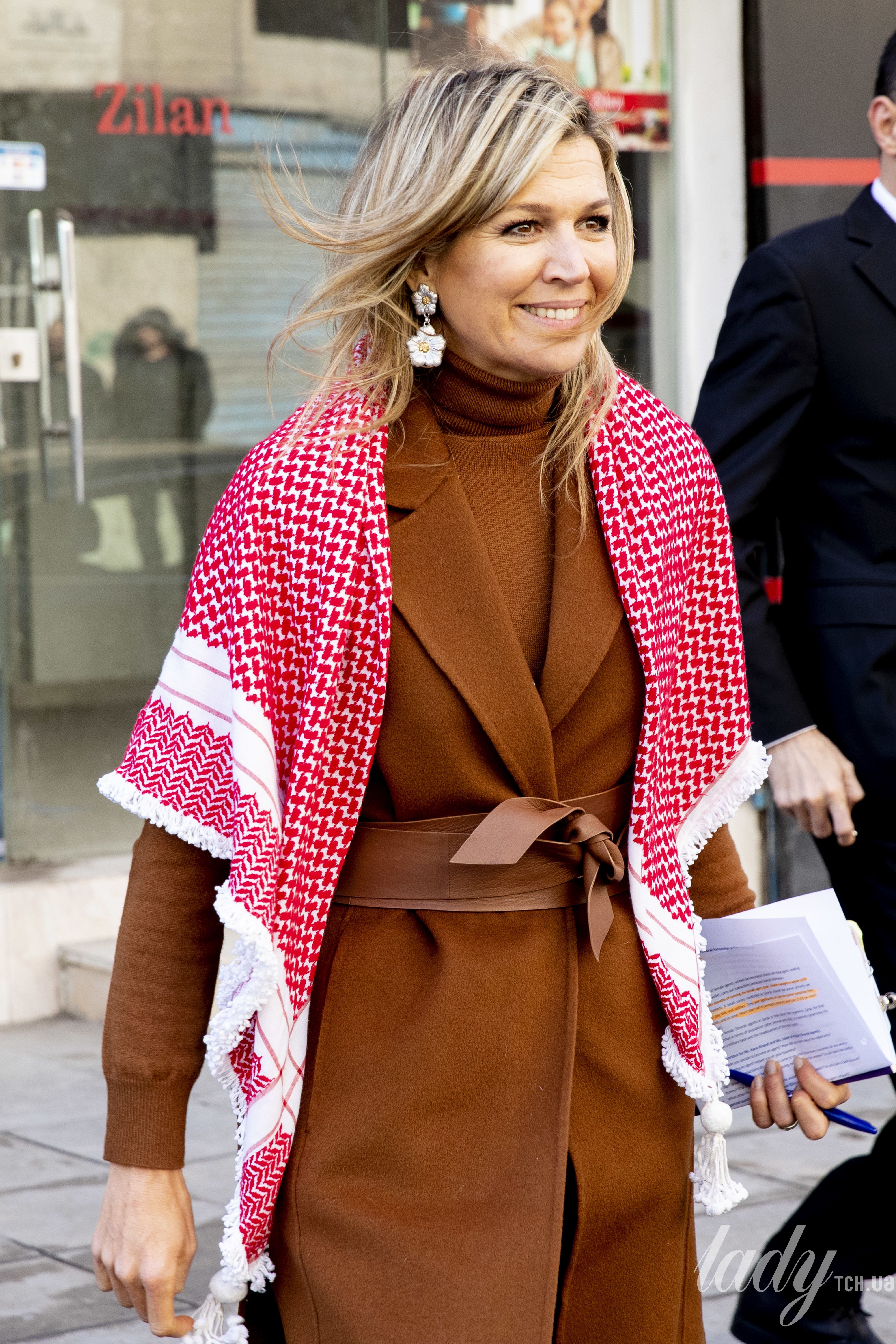 47-летняя Максима появилась на публике в светлом платье, расшитом пайетками, с широким нюдовым поясом, подчеркивающим ее талию. К ее образу были подобраны светлый клатч от Bottega Veneta, шарф, который королева несла в руках, и любимые лаковые туфли с бантиками на устойчивых каблуках. В ушах Максимы были новые серьги с камнями, а в макияже она предпочла естественные оттенки и прическе особого значения не придала, просто распустила волосы.