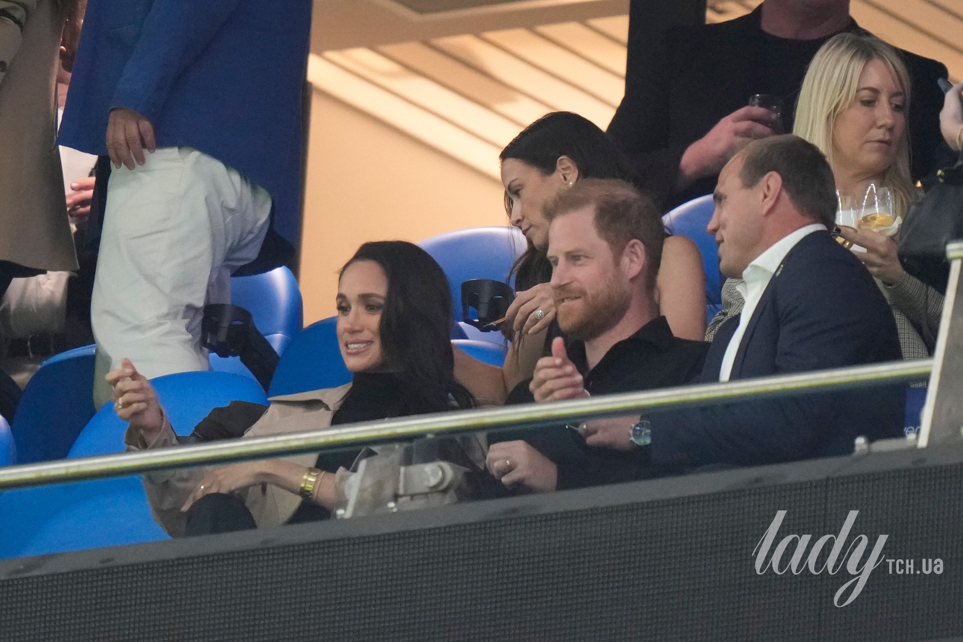 В тренче и с бокалом: Меган Маркл приехала с принцем Гарри на матч по регби