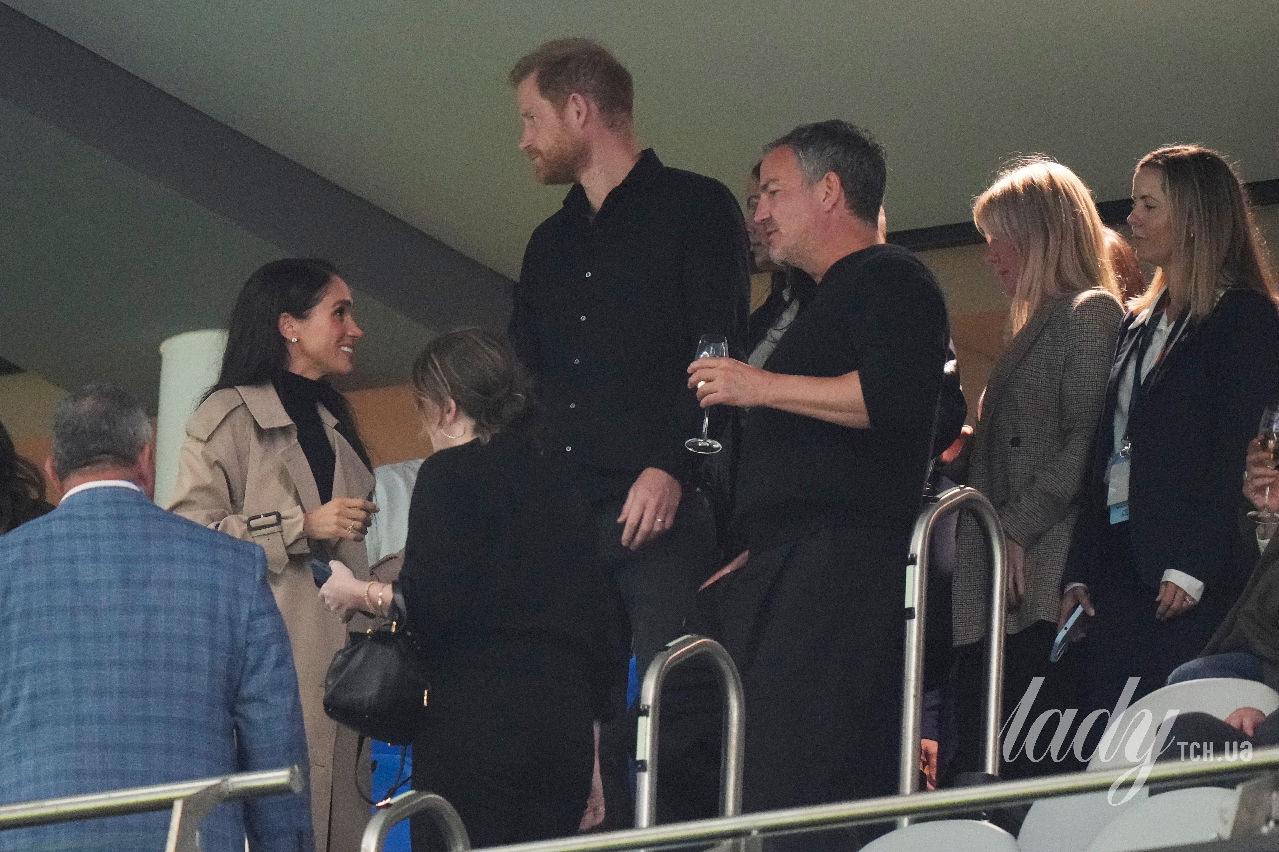 На трибунах сиднейского стадиона Меган появилась в тренче верблюжьего цвета, а принц Гарри был одет во все черное.