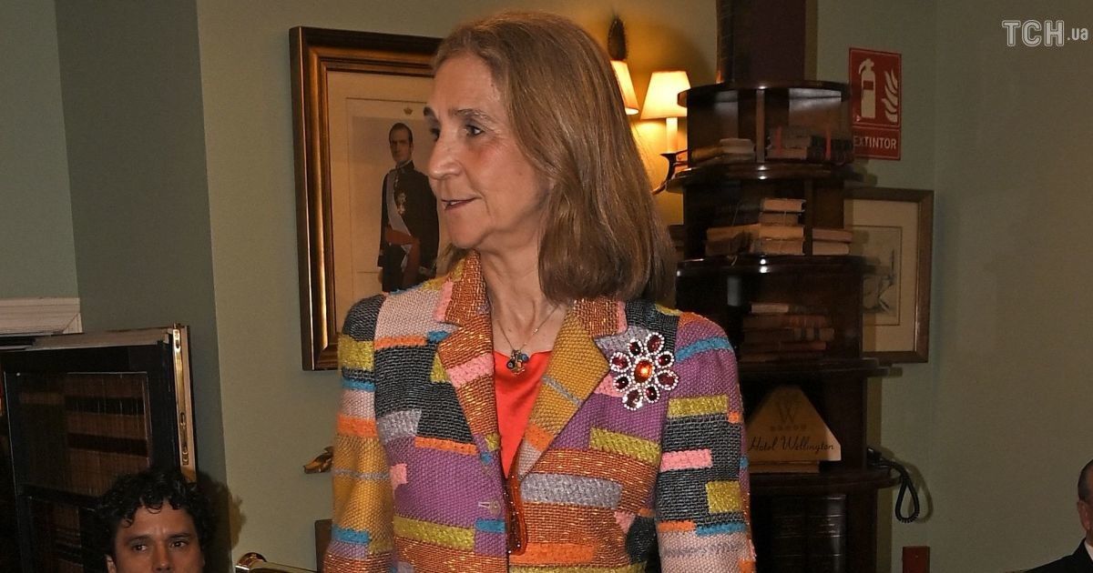 Инфанта Елена участвовала в церемонии вручении наград Meninas 2022 в Мадриде. Для выхода в свет 59-летняя принцесса выбрала пестрый разноцветный жакет от Christian Lacroix, под который надела оранжевый шелковый топ и кофейные широкие брюки, в тон которых подобрала остроносые туфли на каблуках.