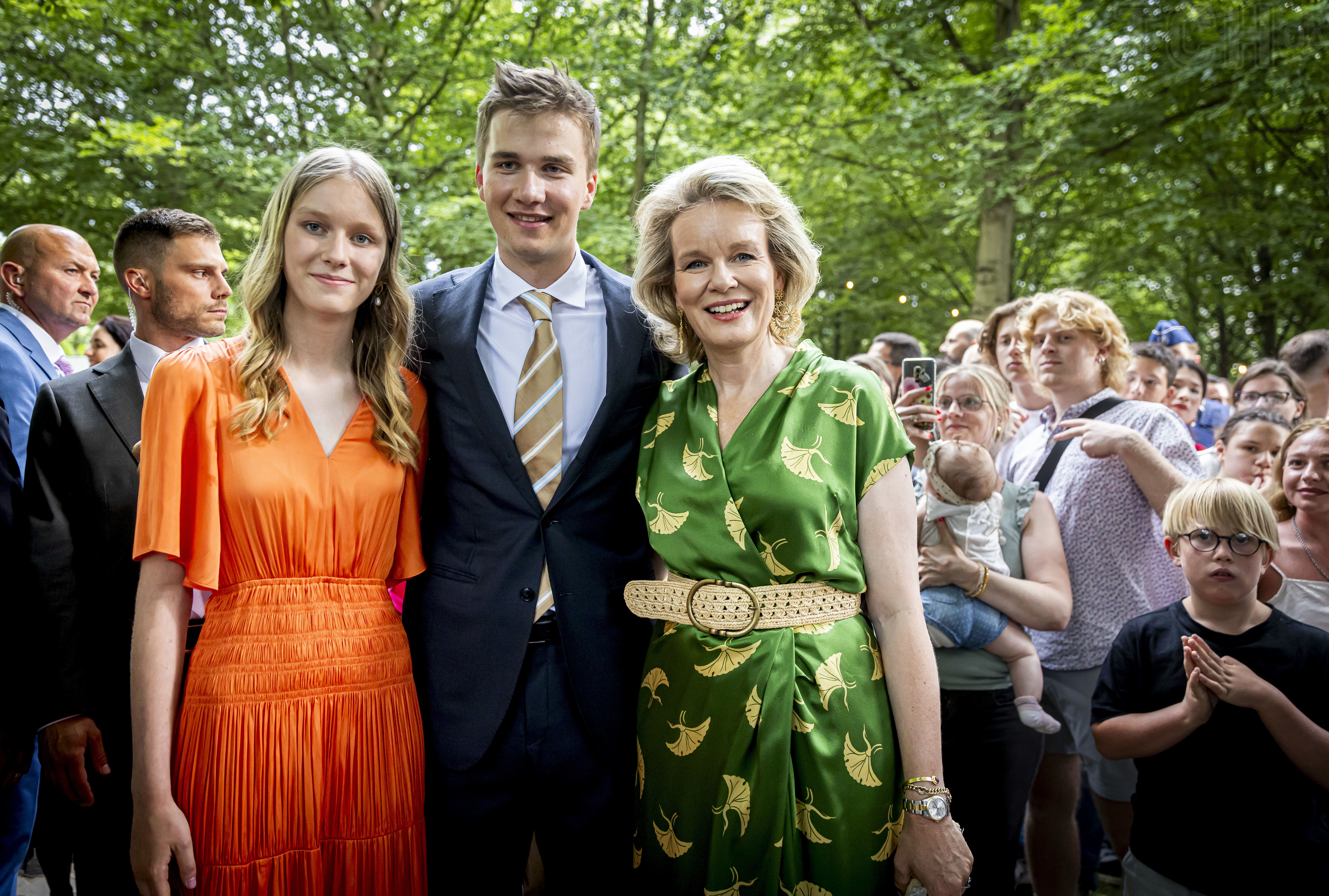 Ее Величество присутствовала во время вечеринки в Брюссельском парке, где тепло приветствовала публику. Вместе с ней были ее младшая дочь принцесса Элеонора и сын принц Габриэль.