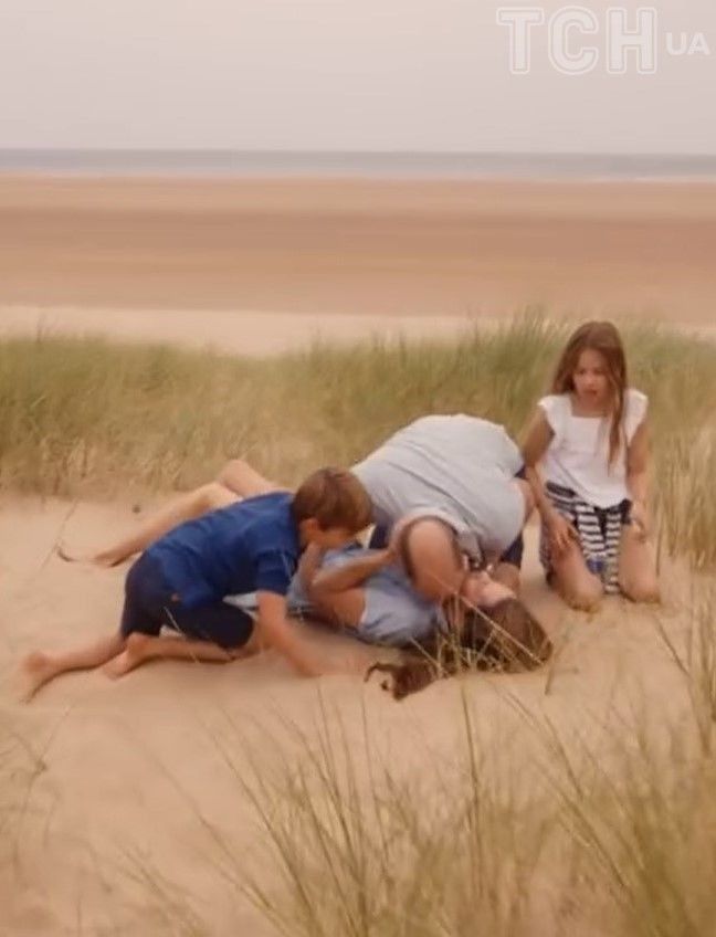 Был и еще один поцелуй. Вместе с детьми они дурачились на пляже и начали обнимать Кейт, после чего Уильям снова поцеловал жену, но уже в шею.
