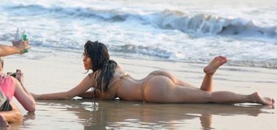 Как-то раз в прессе даже писали, что у Кардашьян в команде есть специально обученные люди, которые при каждой пляжной съемке натирают ее ягодицы песком. Для эффектности!