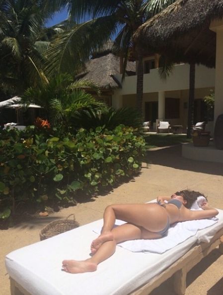 На отдыхе Ким всегда в бикини, а вместе с ней повсюду телефон. Иначе как делать селфи и показать снимок в Сети?