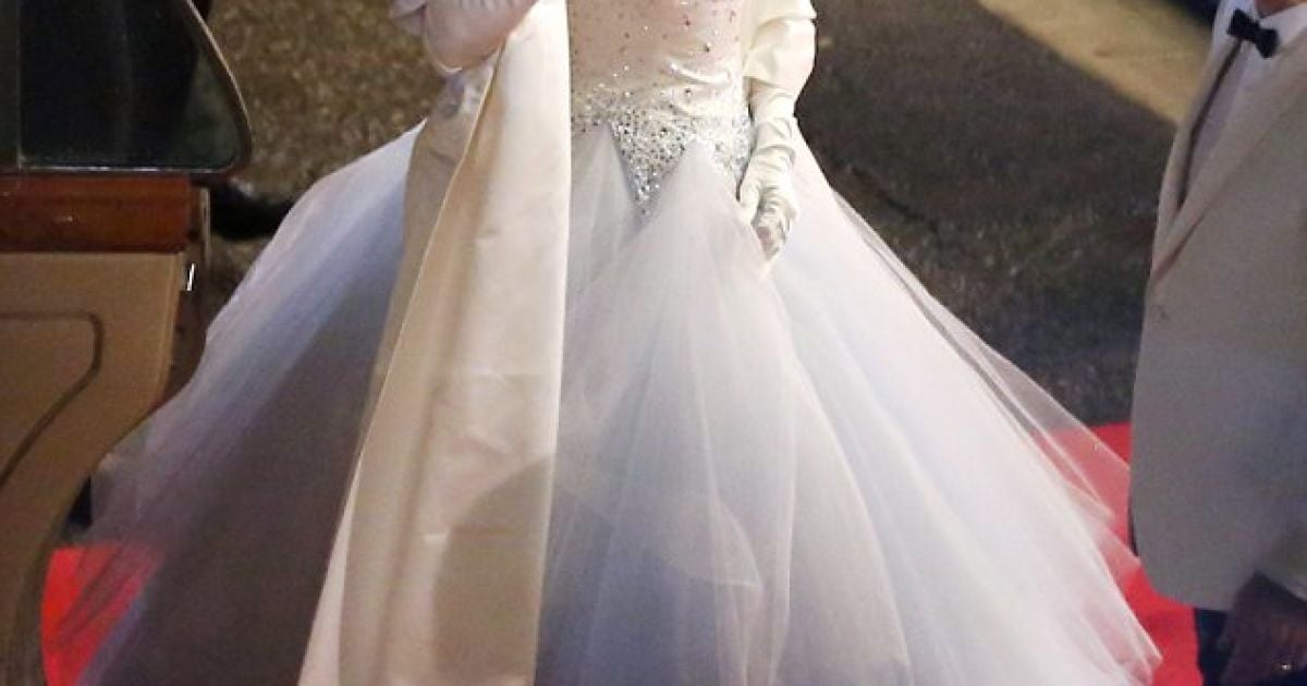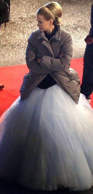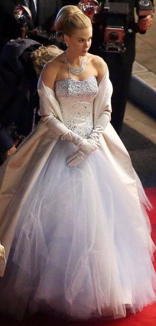 Актриса имеет удивительное сходство со своей главной героиней. Новый королевский образ – это свадебный наряд, который Николь примерила для бала. Образ дополняла высокая вечерняя прическа, которую так любила княгиня.