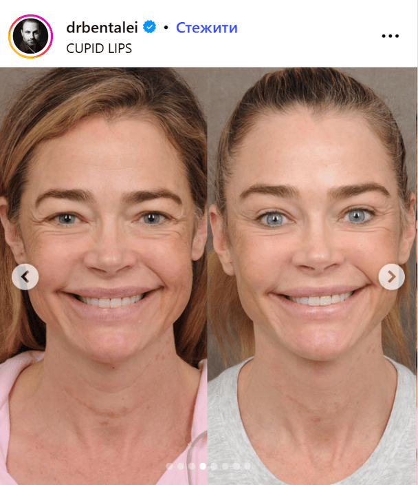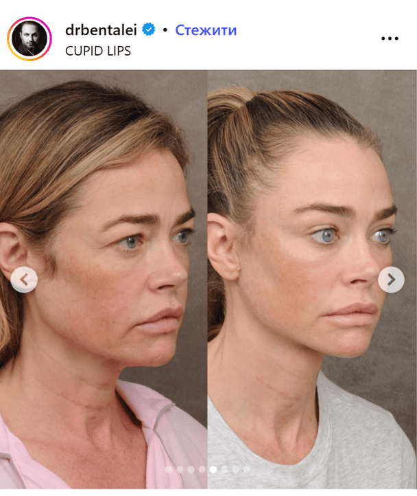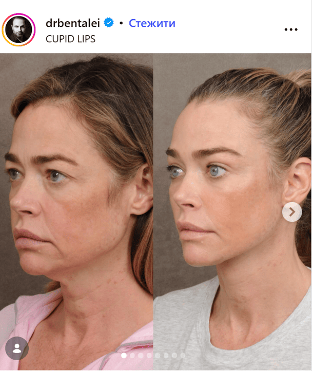 О подтяжке лица голливудская звезда открыто рассказала и ничего не скрывала. Впервые она поделилась фактом проведения процедуры 21 марта, а уже 26-го пришла на светское мероприятие. Дениз позировала фотографам в нежном лавандовом платье-комбинации от бренда LoveShackFancy с кружевными вставками и разрезом на юбке, которое сочетала с босоножками-пружинами от известного бренда Rene Caovilla.