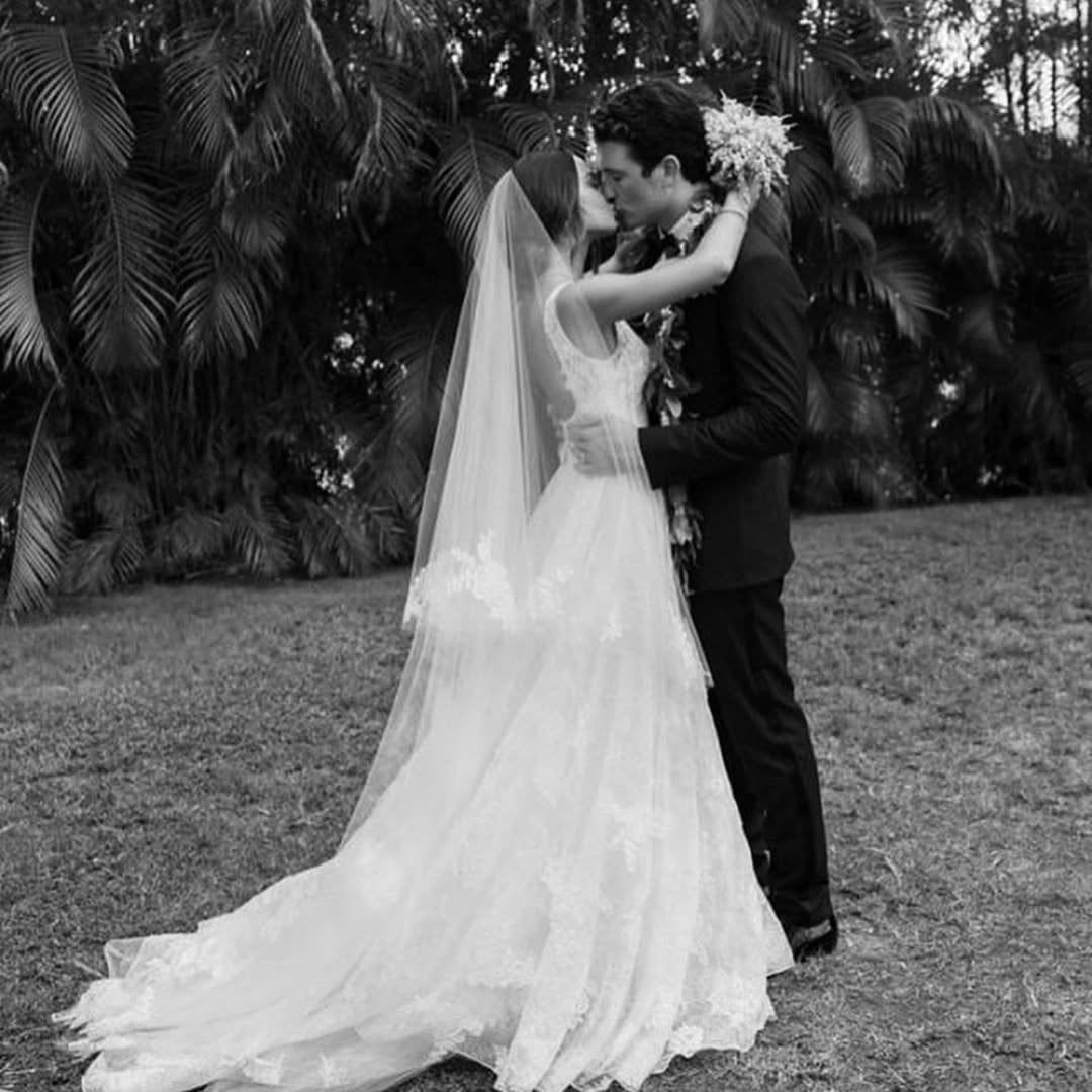 «Я хотела сохранить элегантность и классику, ведь наше венчание проходило в церкви, но при этом стремилась, чтобы платье было легким по ощущениям», — рассказывала о своем наряде 2019 года невеста изданию Vogue. Вместе с дизайнером она создала именно тот образ, о котором мечтала. «Они действительно помогли мне воплотить мое видение. Мы начали с довольно простого платья, которое я немного переделала, чтобы достичь идеального вневременного настроения». Образ она дополнила ожерельем своей мамы — украшением, в котором к алтарю также шли все ее сестры.