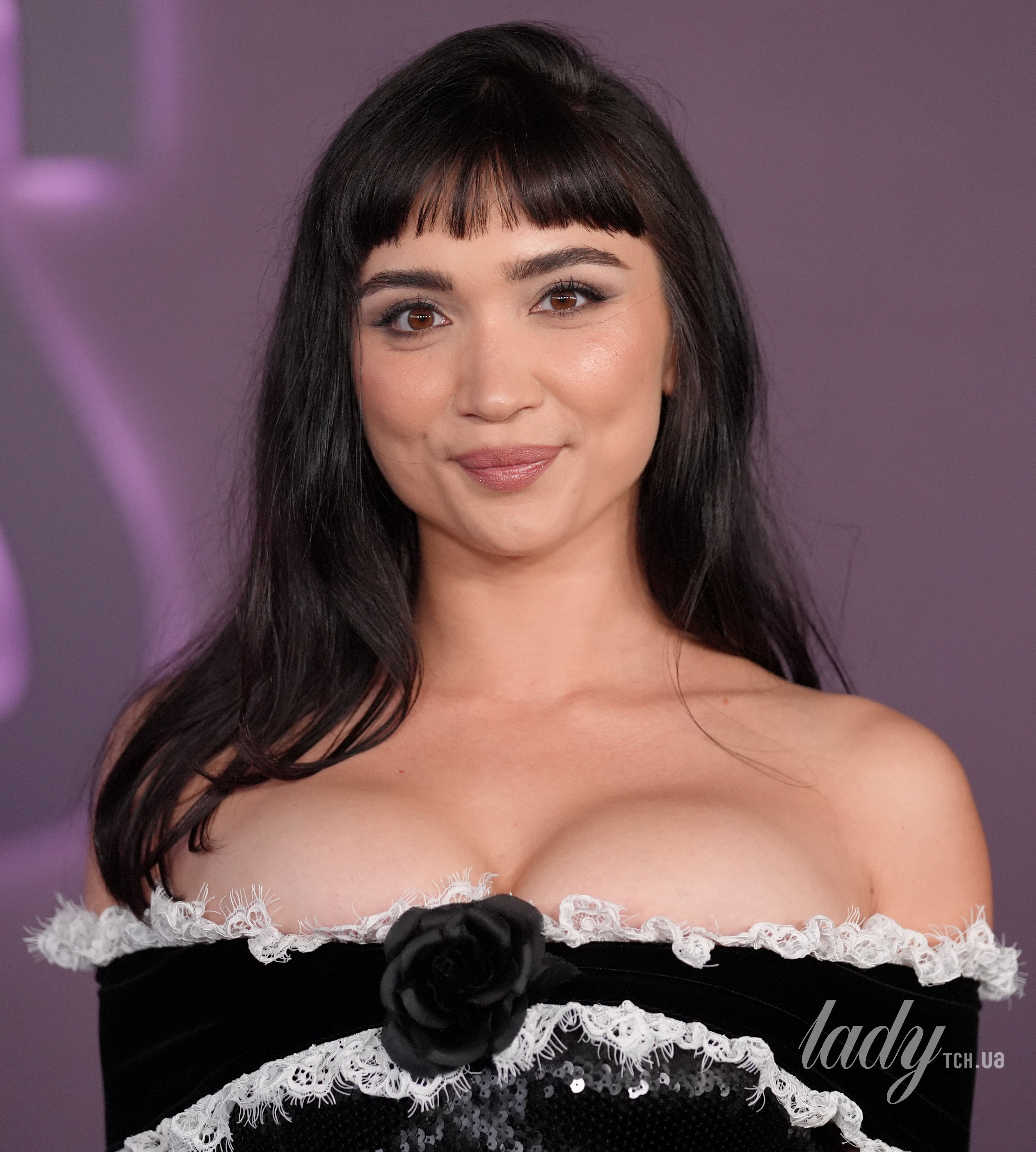 На Роуэн было черное платье приталенного силуэта, расшитое пайетками, от бренда Rodarte. Наряд имел открытую линию плеч, бархатную вставку на лифе, украшенную белым кружевом и черным 3D-цветком. Главным акцентом в ее луке было откровенное декольте, которое подчеркнуло ее пышный бюст.