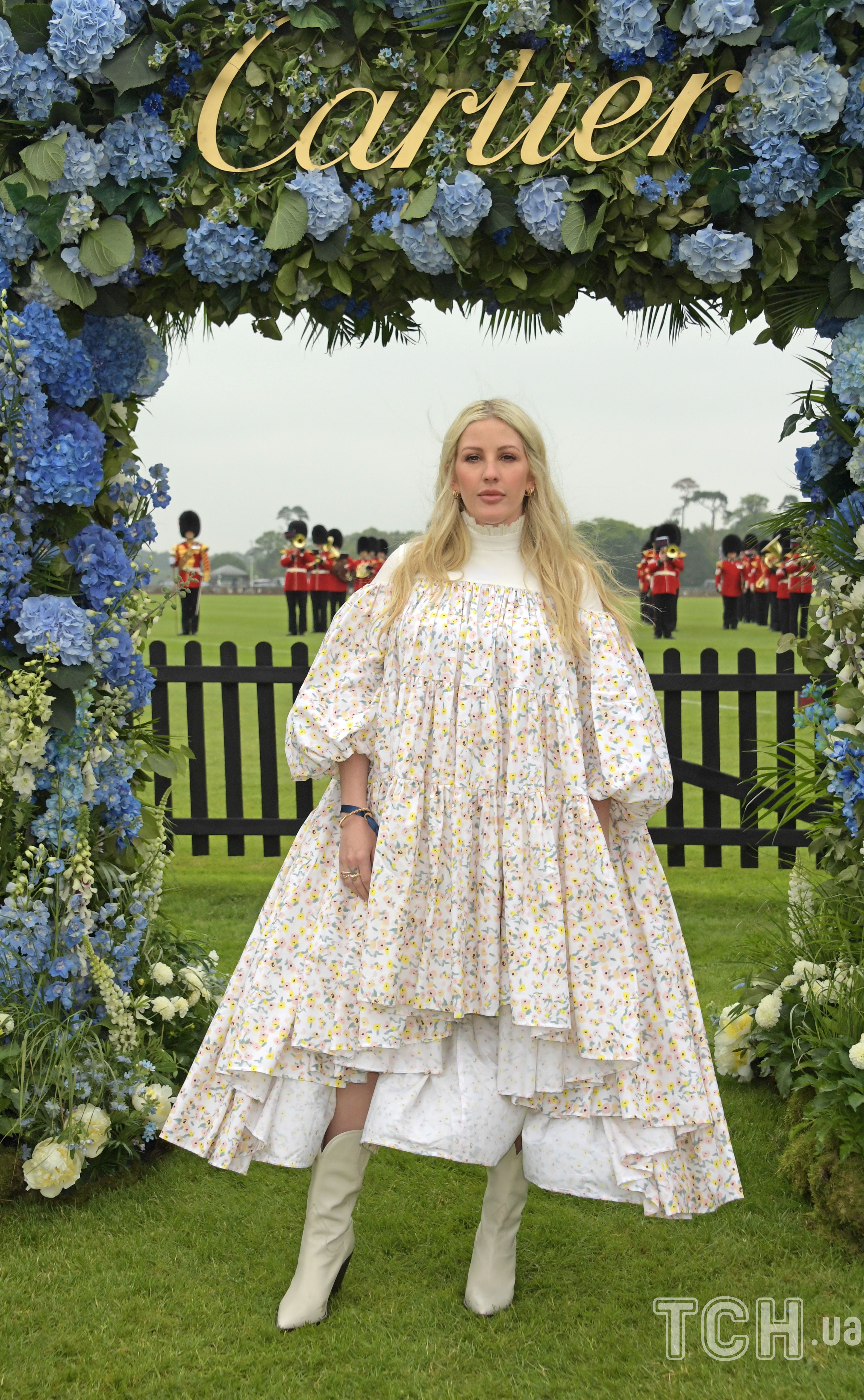 Платье Элли состояло из двух слоев — шелкового нижнего платья с кружевом на подоле и лифе, а также верхнего сетчатого платья с высокой горловиной и длинными рукавами. Наряд певица дополнила набором украшений с бриллиантами и сатиновыми туфлями-лодочками с декором в виде рюшей.