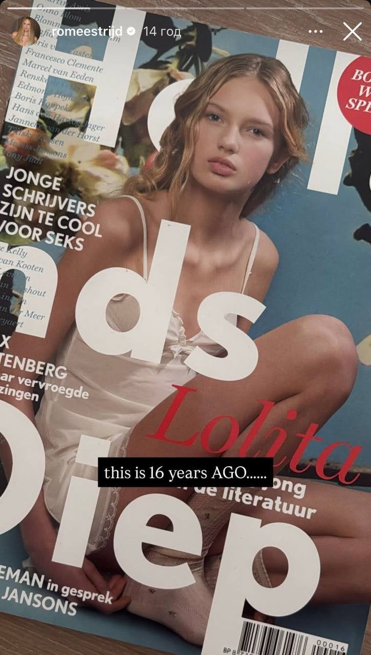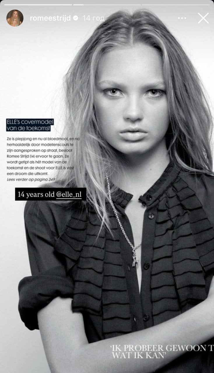 Также она показала кадр из фотосессии для нидерландской редакции журнала Elle. Судя по подписи, ей тогда тоже было 14 лет.