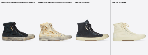 Этой весной Демна Гвасалия решил шокировать лимитированной коллекцией состаренных кед - Paris sneaker (парижские кроссовки). Маркетологи бренда утверждают, что эта обувь "предназначена для ношения на всю жизнь".