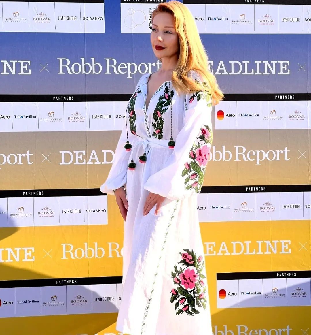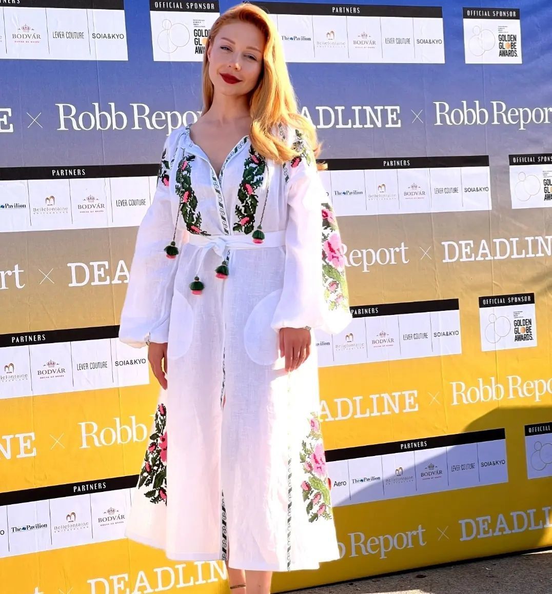 Там Тина появилась в красивом платье-вышиванке от украинского бренда FOBERINI.