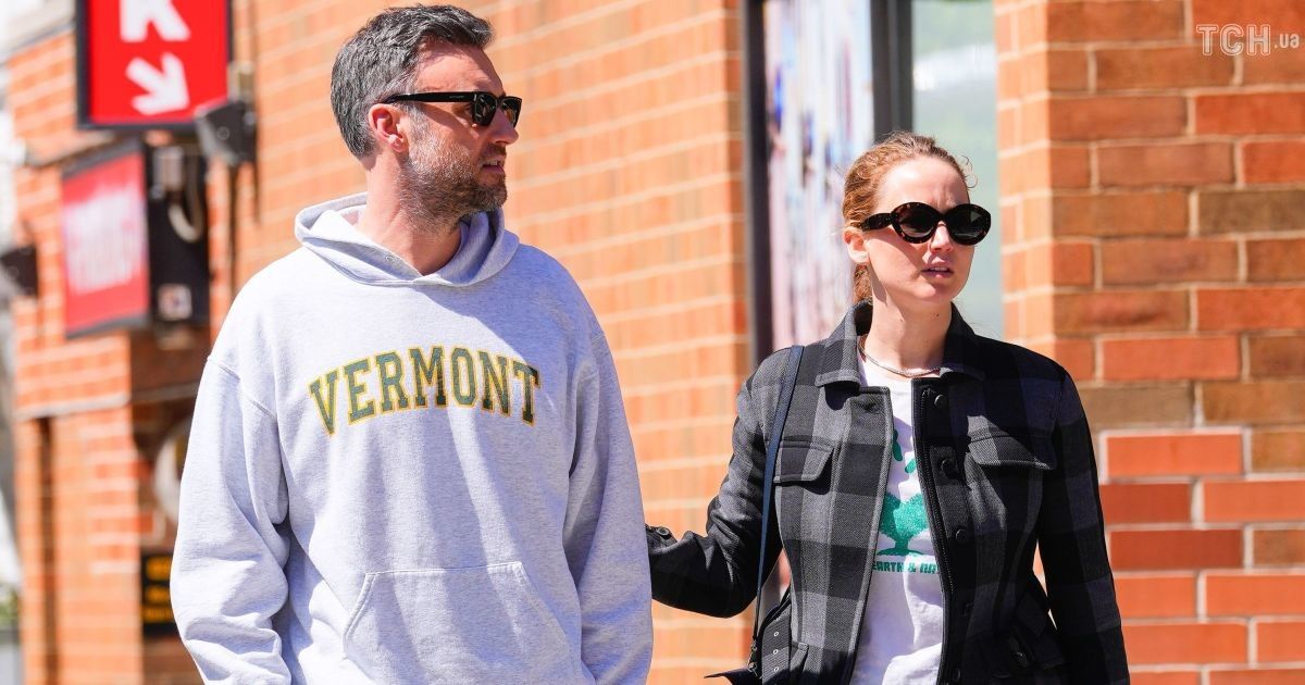 Муж звезды, арт-галерист, решил надеть серое худи с принтом Vermont (Вермонт - штат США), штаны хаки и кроссовки. На глазах у Кука были солнцезащитные очки.