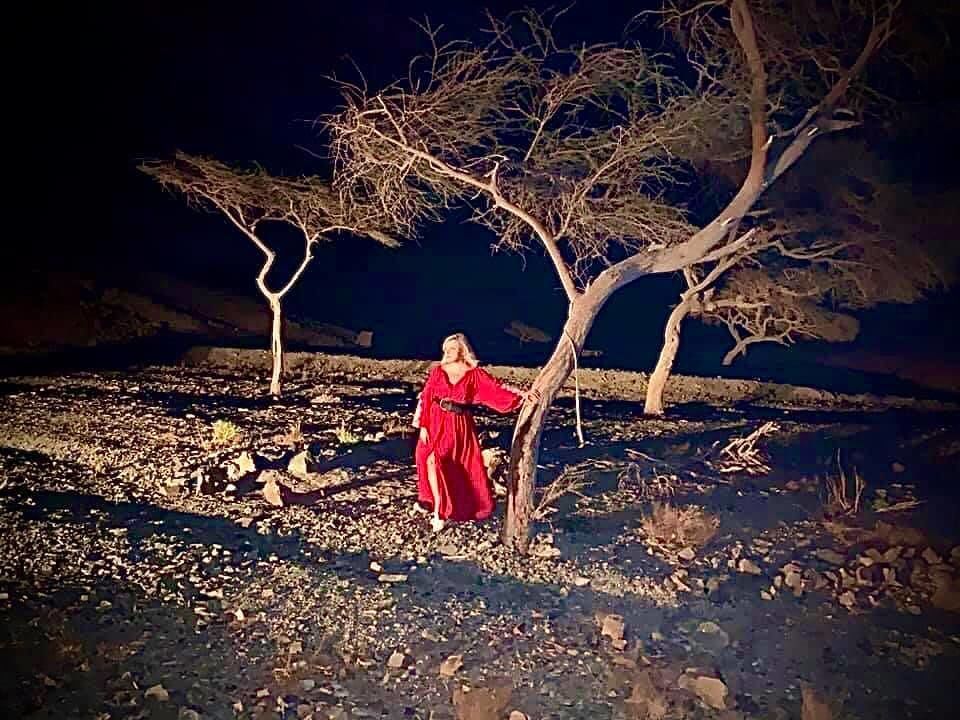 Отдых продолжается: Мария Бурмака в красном платье позировала в ночной пустыне