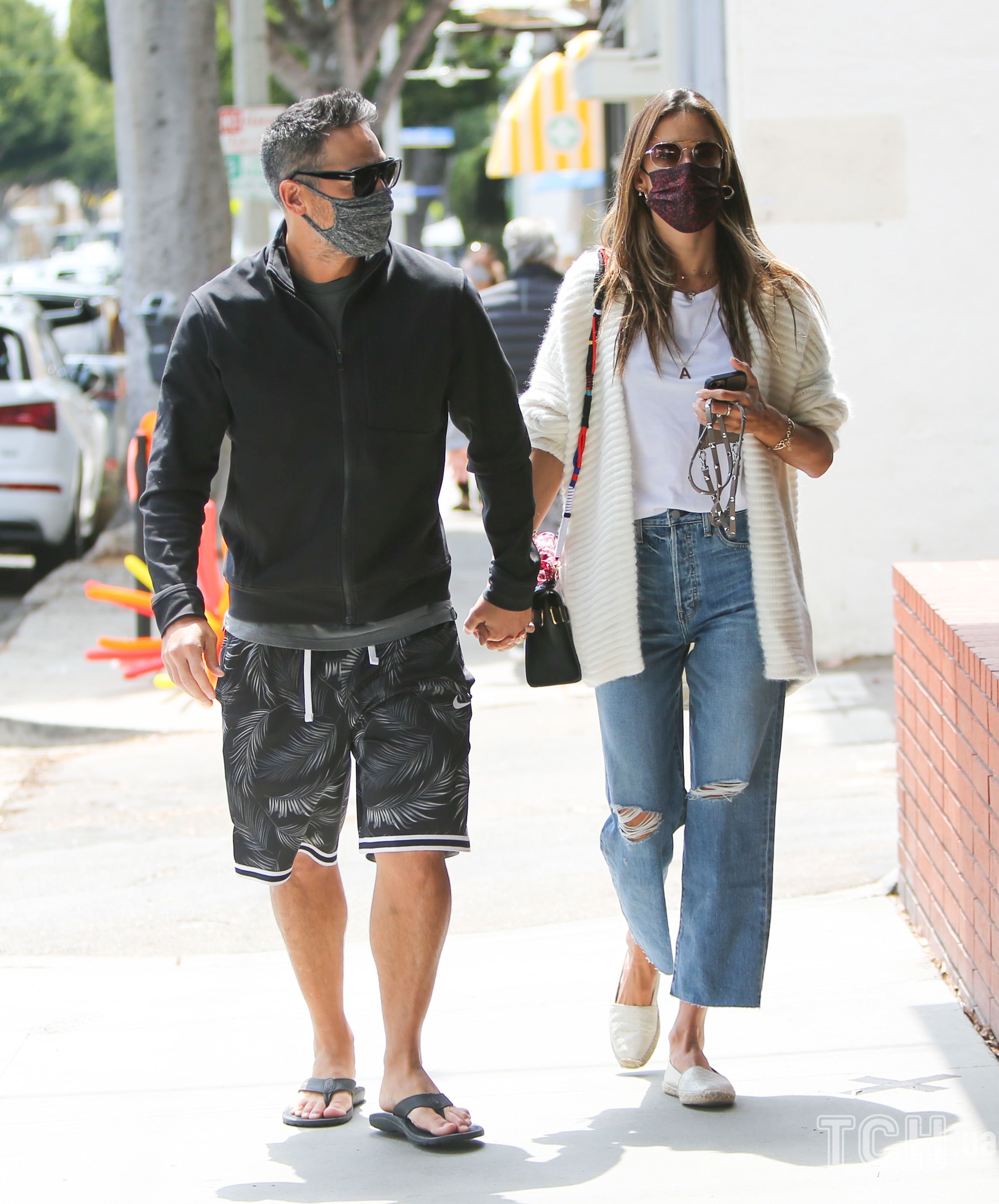 Теперь пару сфотографировали репортеры на прогулке в Лос-Анджелесе. Алессандра была одета в лаконичную белую футболку, рваные джинсы и белый кардиган, а обута - в эспадрильи. Ее возлюбленный был в шортах, черной олимпийке и вьетнамках. Они держались за руки, и оба были в защитных масках на лицах.
