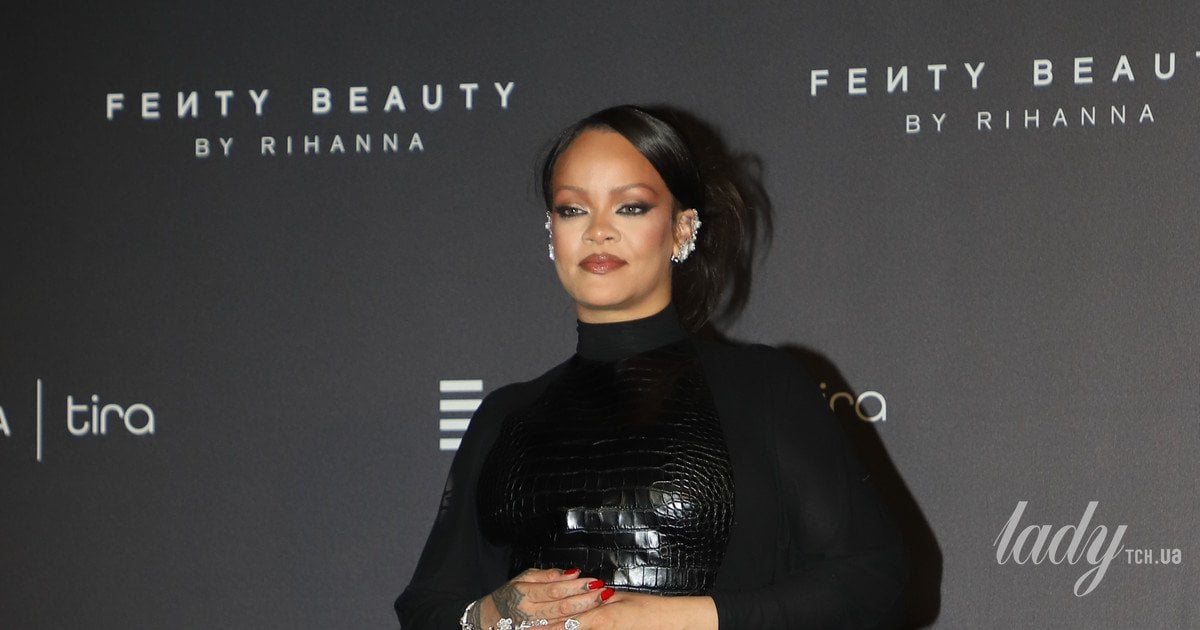 Рианна сначала вышла к фотографам в черном длинном платье Alaia из коллекции осень-зима 2026, которое имело оригинальную деталь — кожаную вставку спереди под рептилию.