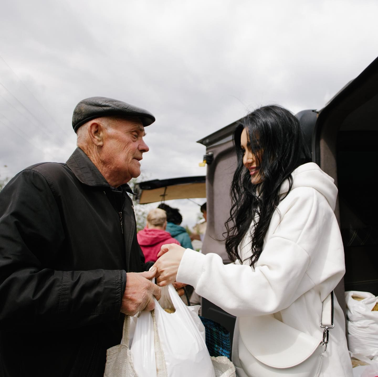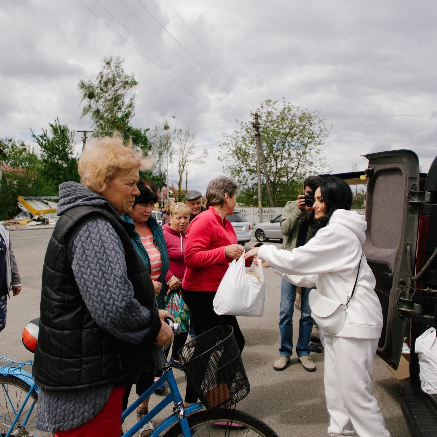 Певица с волонтерами приехала поддержать местных жителей. Они привезли для них гуманитарную помощь. Люди с большой благодарностью брали продукты и беспокоились, чтобы свертков хватило для всех соседей.