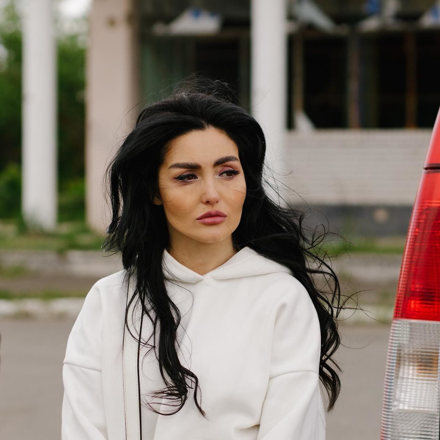 Артистка не могла сдержать слез, когда увидела поселок с поврежденными и полностью разрушенными домами, обстрелянными школами, садиками и больницами.