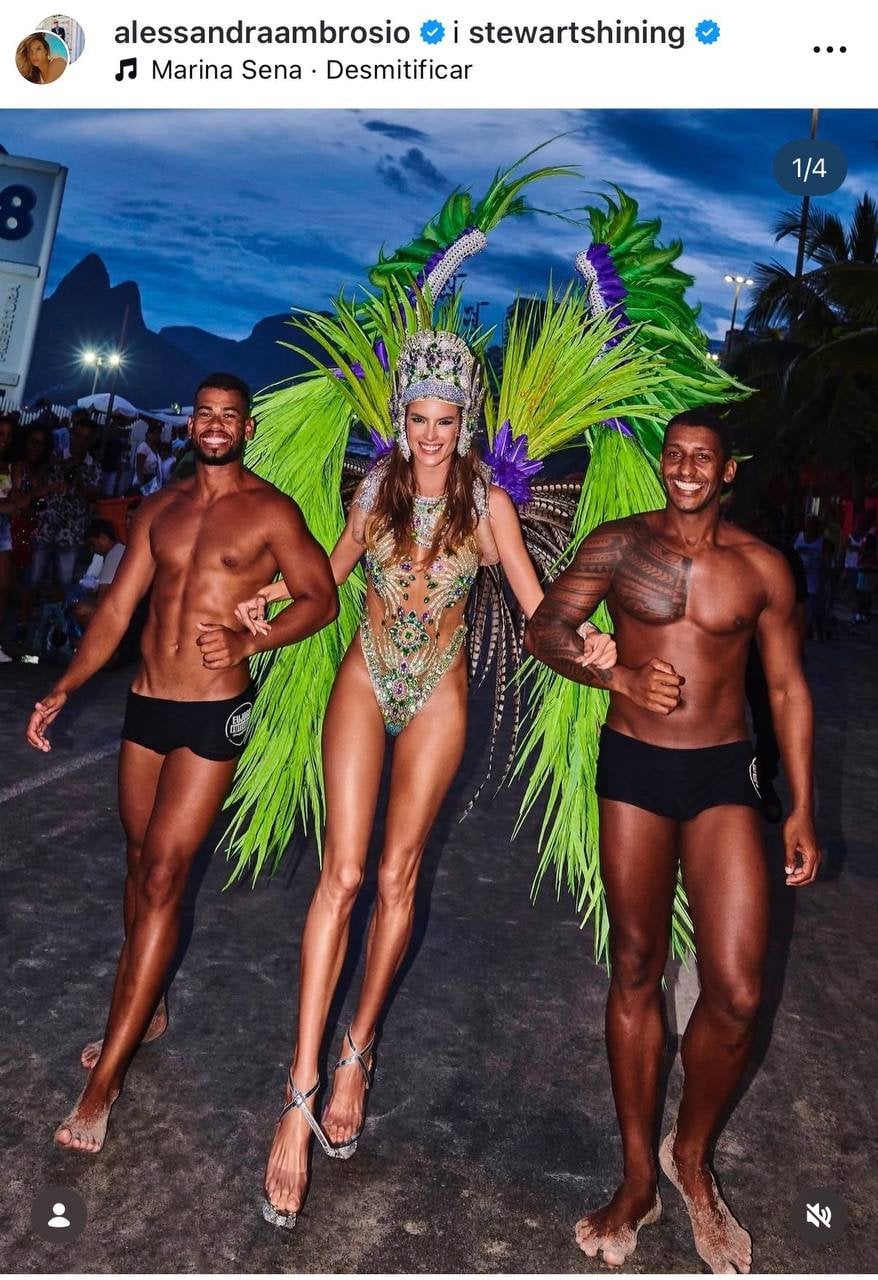 44-летняя бразильская топ-модель и «ангел» Victoria’s Secret — Алессандра Амбросио — не смогла пропустить такое легендарное мероприятие. Свой яркий карнавальный костюм она показала в своем Instagram.