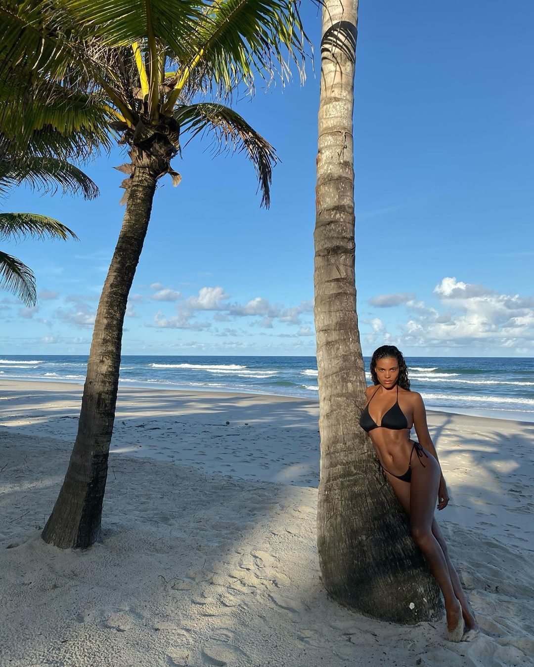 22-летняя Кунаки поделилась со своими подписчиками новыми фото, сделанными на пляже. Позировала Тина в черном бикини около высоких пальм на фоне моря.