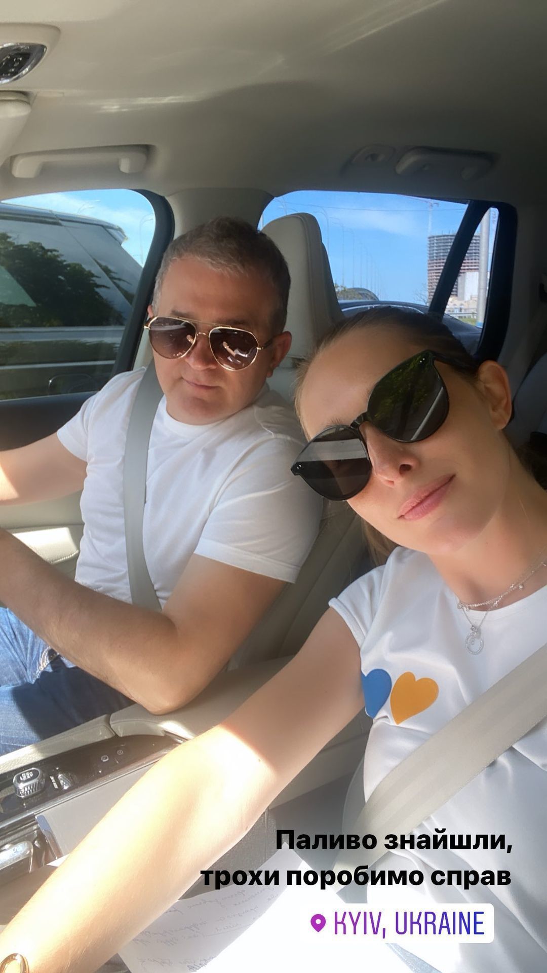Под одним из снимков, где Осадчая запечатлена с супругом Юрием Горбуновым, она написала, что бензин им в Киеве найти удалось, а в Киев она приехала, чтобы сделать несколько важных дел.