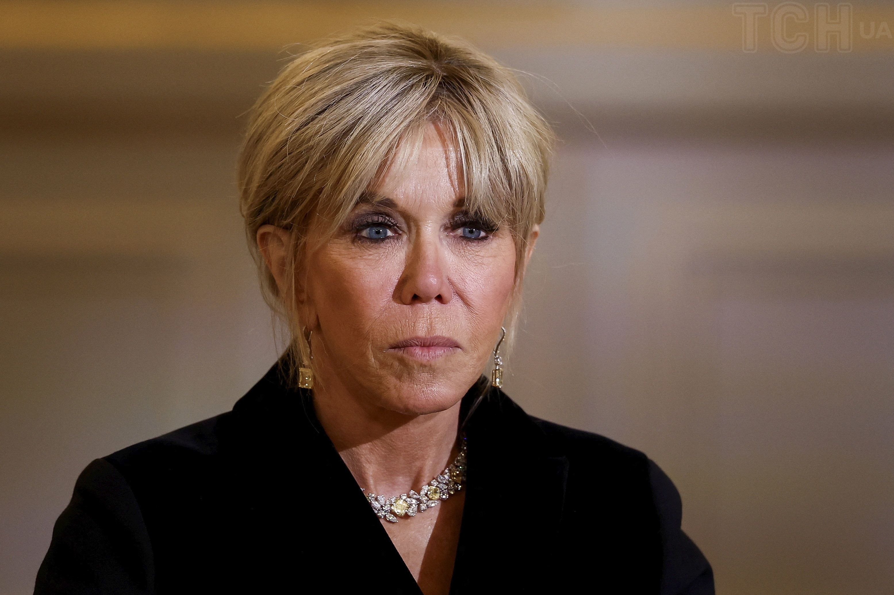 В черном наряде и роскошном колье: Брижит Макрон на праздничном ужине
