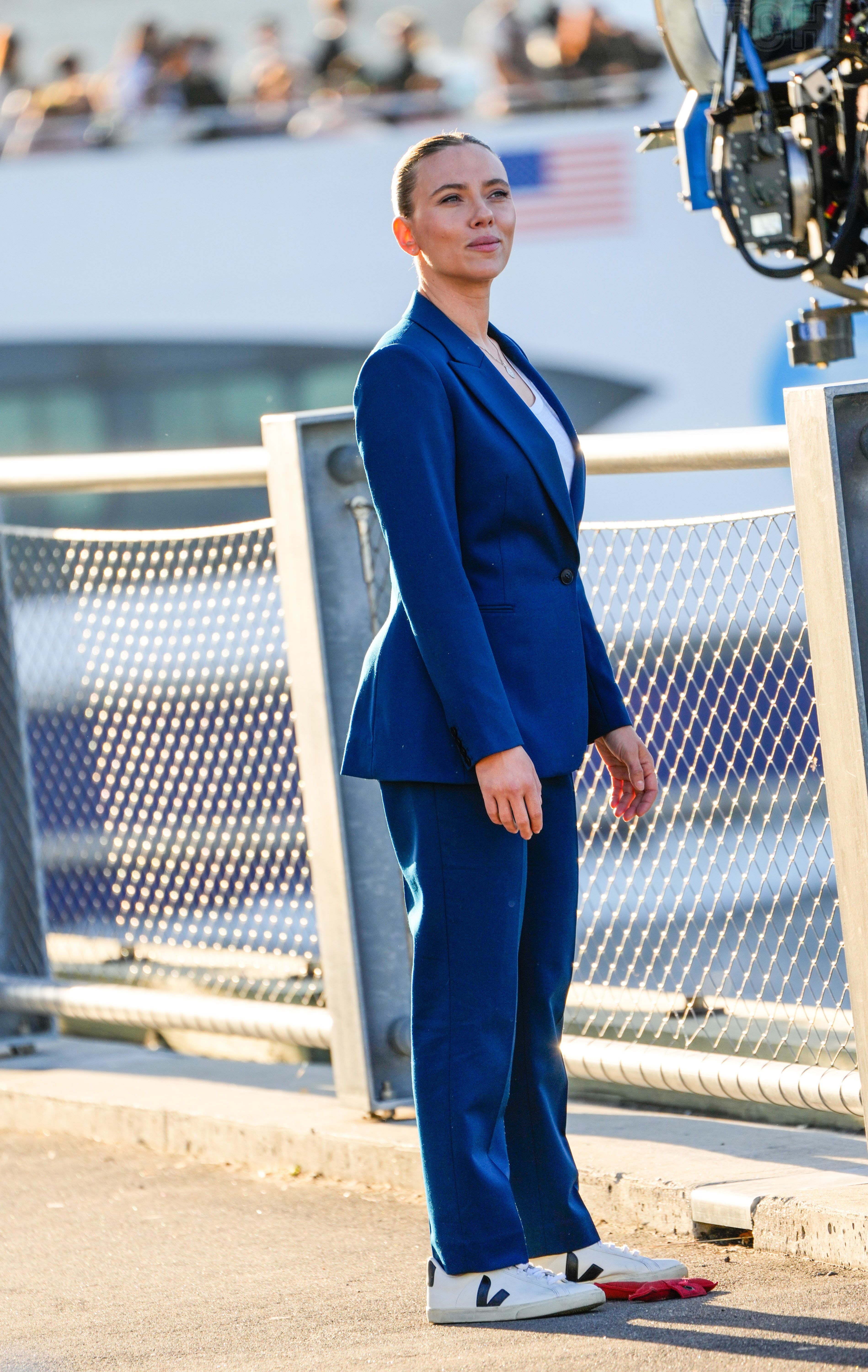В костюме и с лаконичной прической: Скарлетт Йоханссон заметили на съемках нового фильма в Нью-Йорке