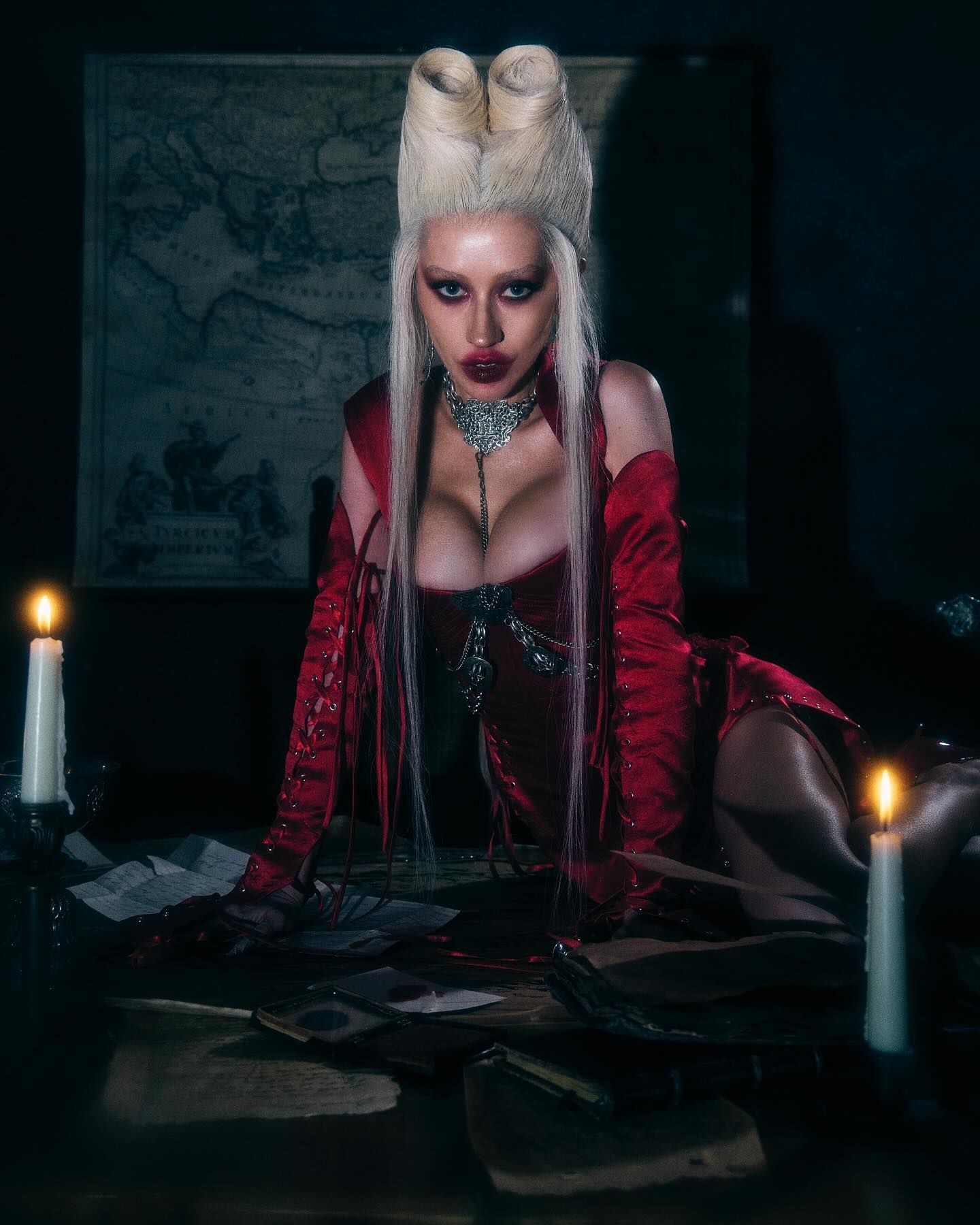 В латексном платье с пикантным декольте: эффектная Адриана Лима примерила образ вампира