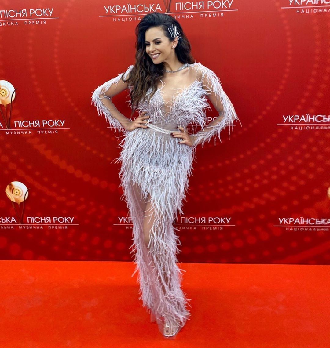 На премии также побывала Настя Каменских, которая продемонстрировала сексуальный лук в полупрозрачном платье с перьями.