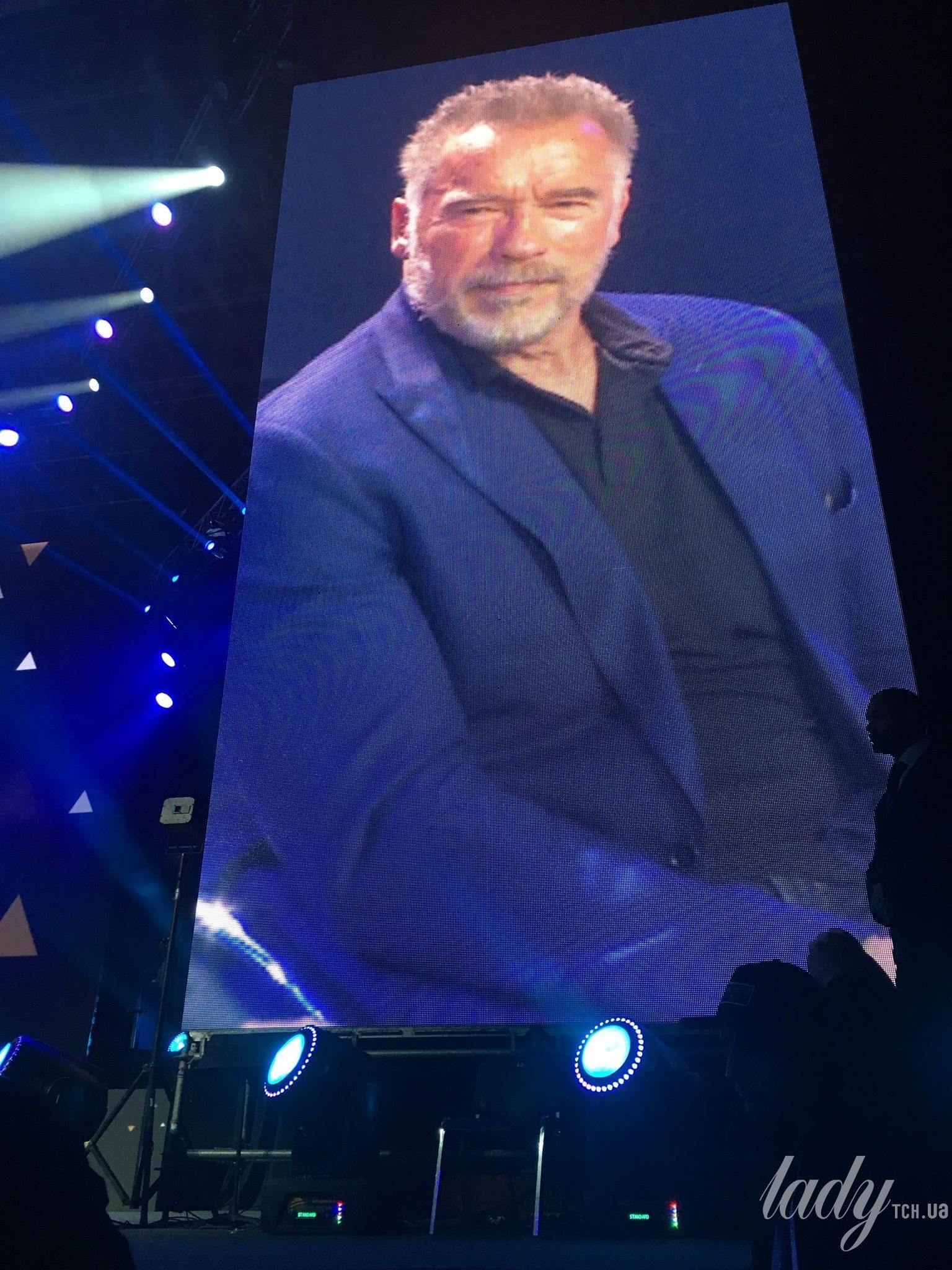 Появление на сцене Шварценеггера ждали больше всего. Его выход встретили бурными овациями и аплодисментами.