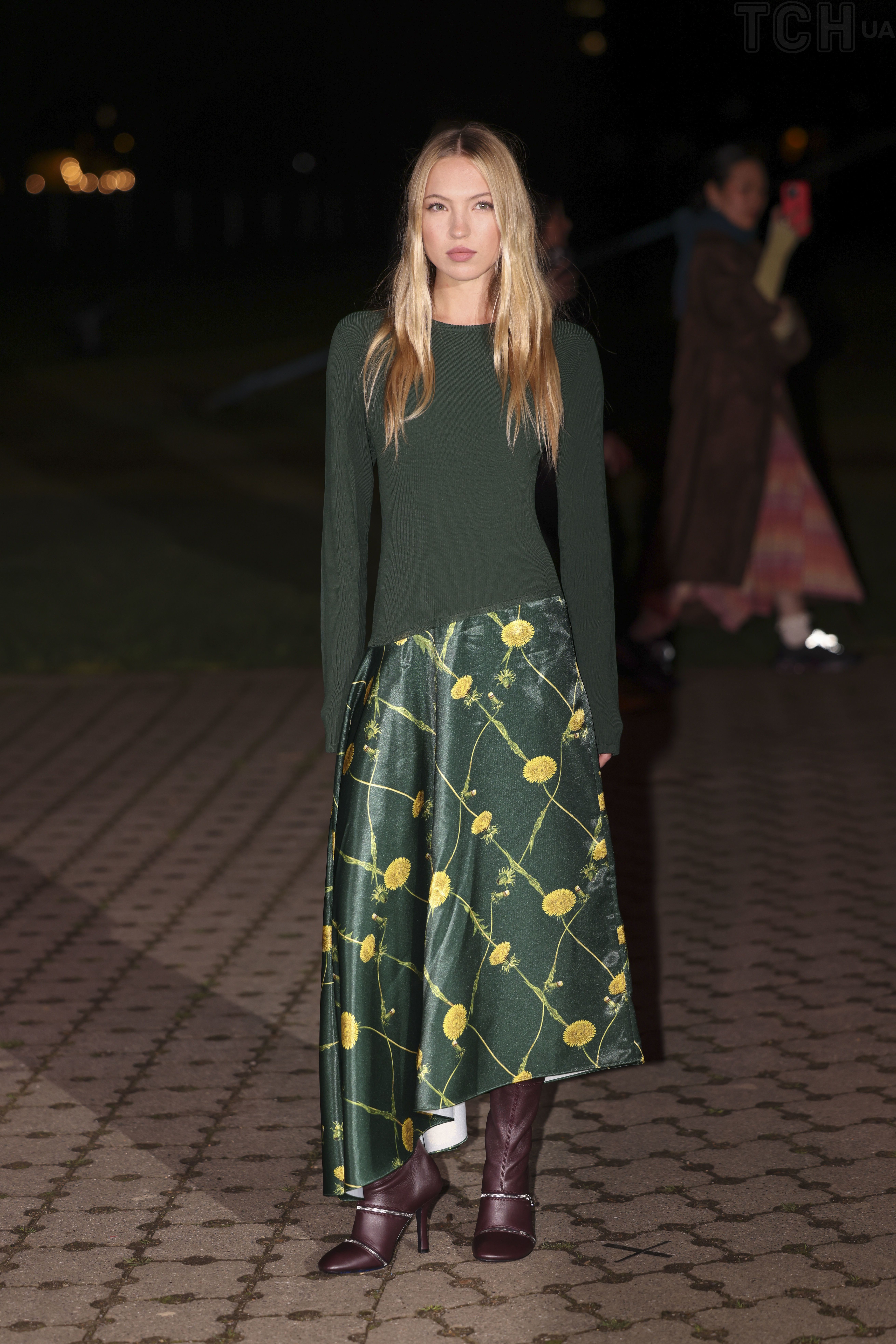 В зеленом платье с одуванчиками: Лила Мосс на показе Burberry в Лондоне