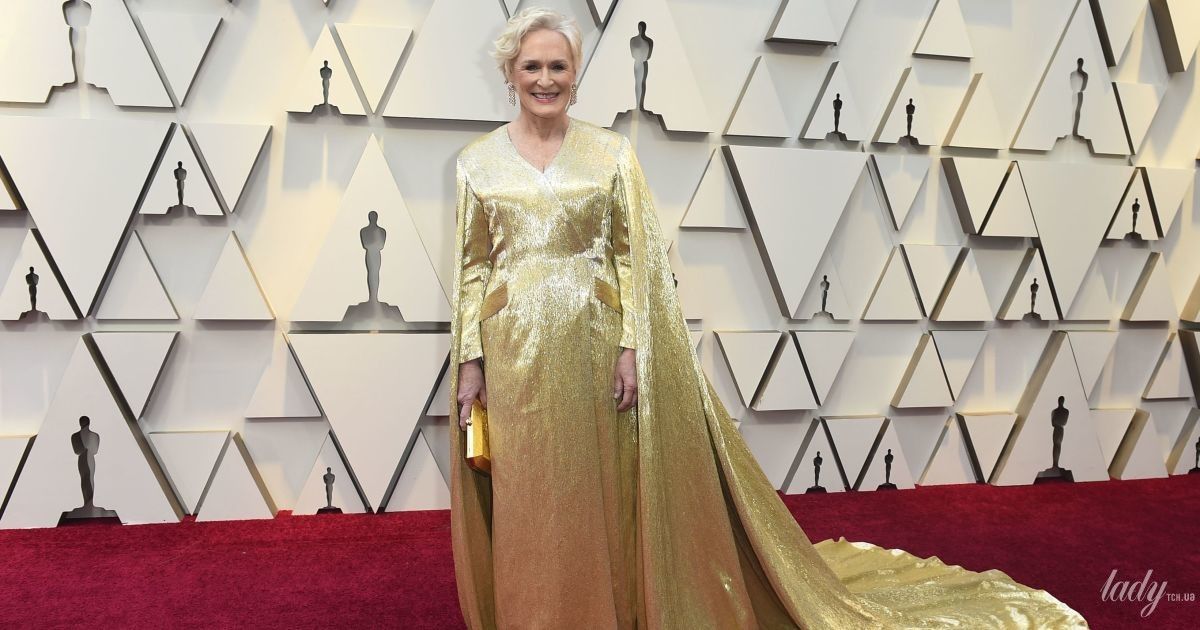 Гленн Клоуз появилась на красной дорожке церемонии награждения премии "Оскар" в шикарном образе: в золотом платье в пол с длинным шлейфом, в котором она была похожа на настоящую королеву.