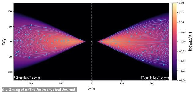 «Цвет отражает плотность газа. Чем ярче цвет, тем плотнее газ вокруг черной дыры», — объяснил автор исследования Личжун Чжан.