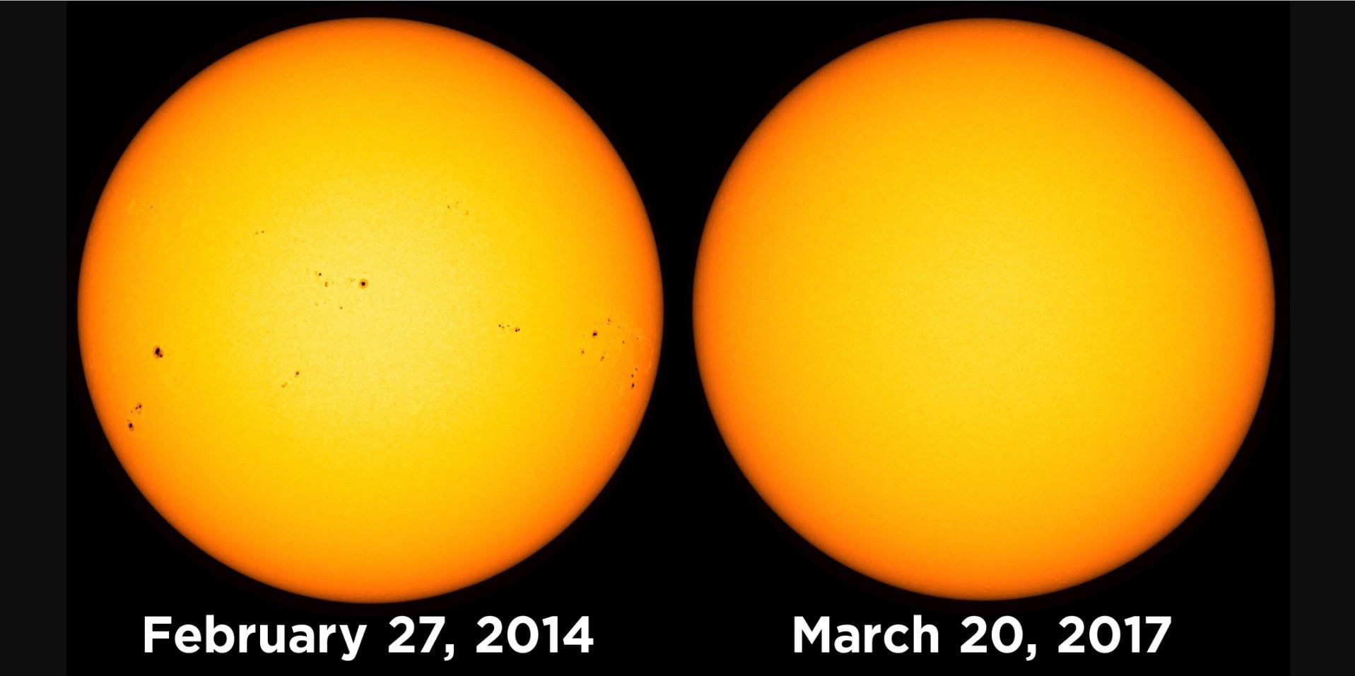 Цикл активности Солнца длится 11 лет, он отмечен двумя крайностями: солнечным максимумом и минимумом. Солнечные же пятна темными регионами активности поверхности Солнца. Количество солнечных пятен используется является показателем активности. Следующий солнечный минимум ожидается в 2019-2020 годах.
