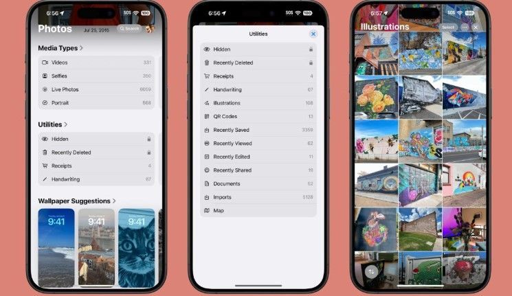 Фото: новый интерфейс, где все последние снимки организованы во вкладке с категориями типа людей, мест, мероприятий. Отдельно выделяются фотографии с чеками, документами, QR-кодами и рукописным текстом.