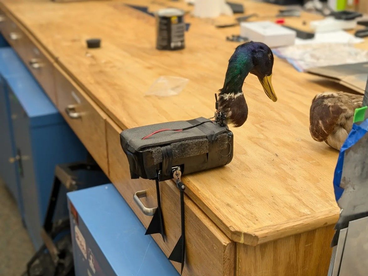Команда объясняет: "Последние разработки в рамках проекта сосредоточены на двух сохраненных таксидермических утках кряквы, разработанных как махающие и плавающие дроны. Плавательная версия воспроизводит движения ног утки, обеспечивая реалистичные, естественные движения в воде. Этот инновационный проект объединяет физиологию птиц с передовой механикой дронов для создания дронов, точно имитирующих природные схемы полета и поведение настоящих птиц".