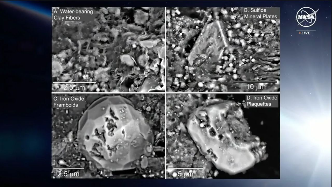 "Первый анализ показывает, что образцы содержат большое количество воды в форме гидратированных глинистых минералов, а также углерод — как в форме минералов, так и органических молекул", — сказал администратор NASA Билл Нельсон.
