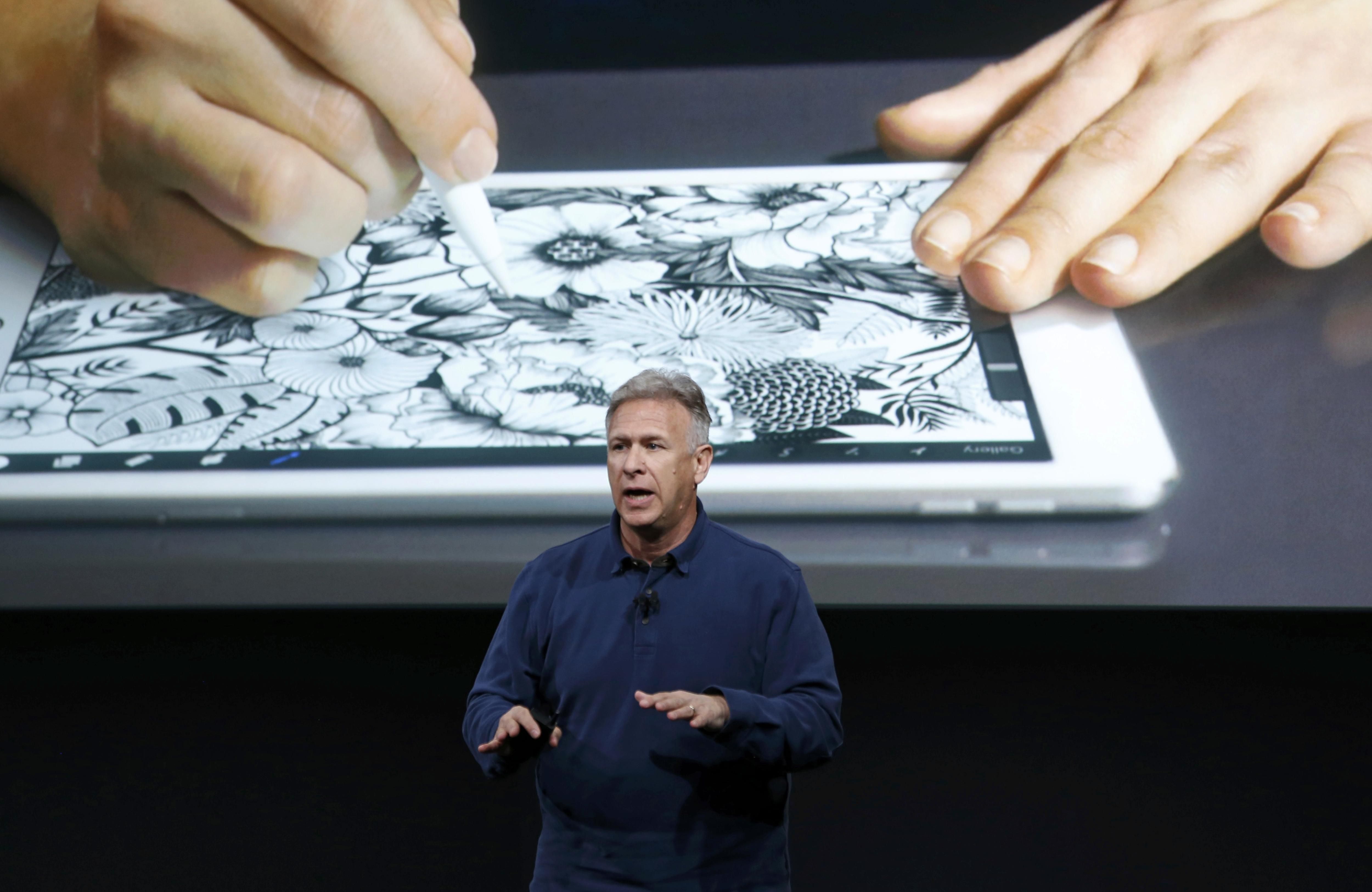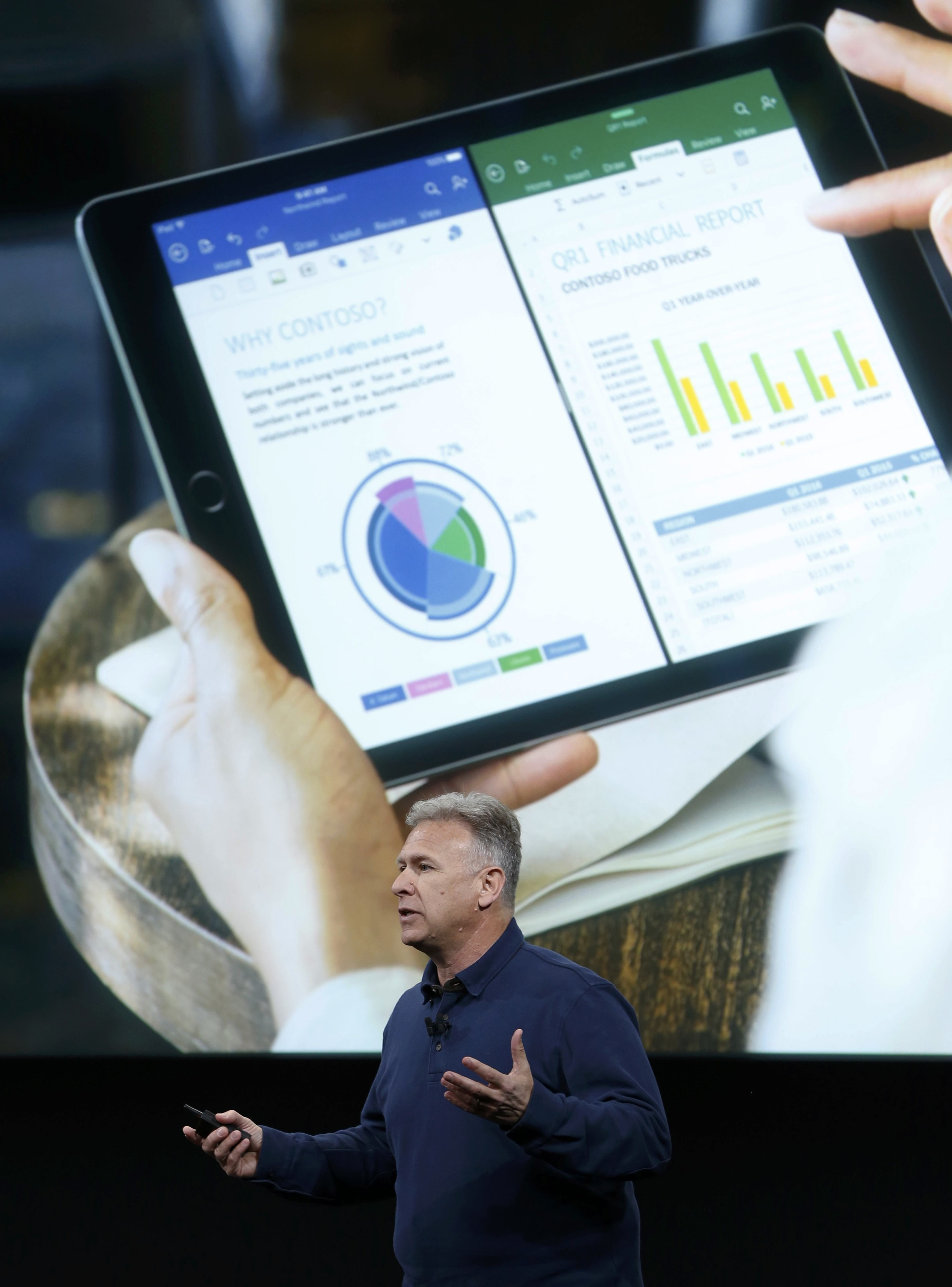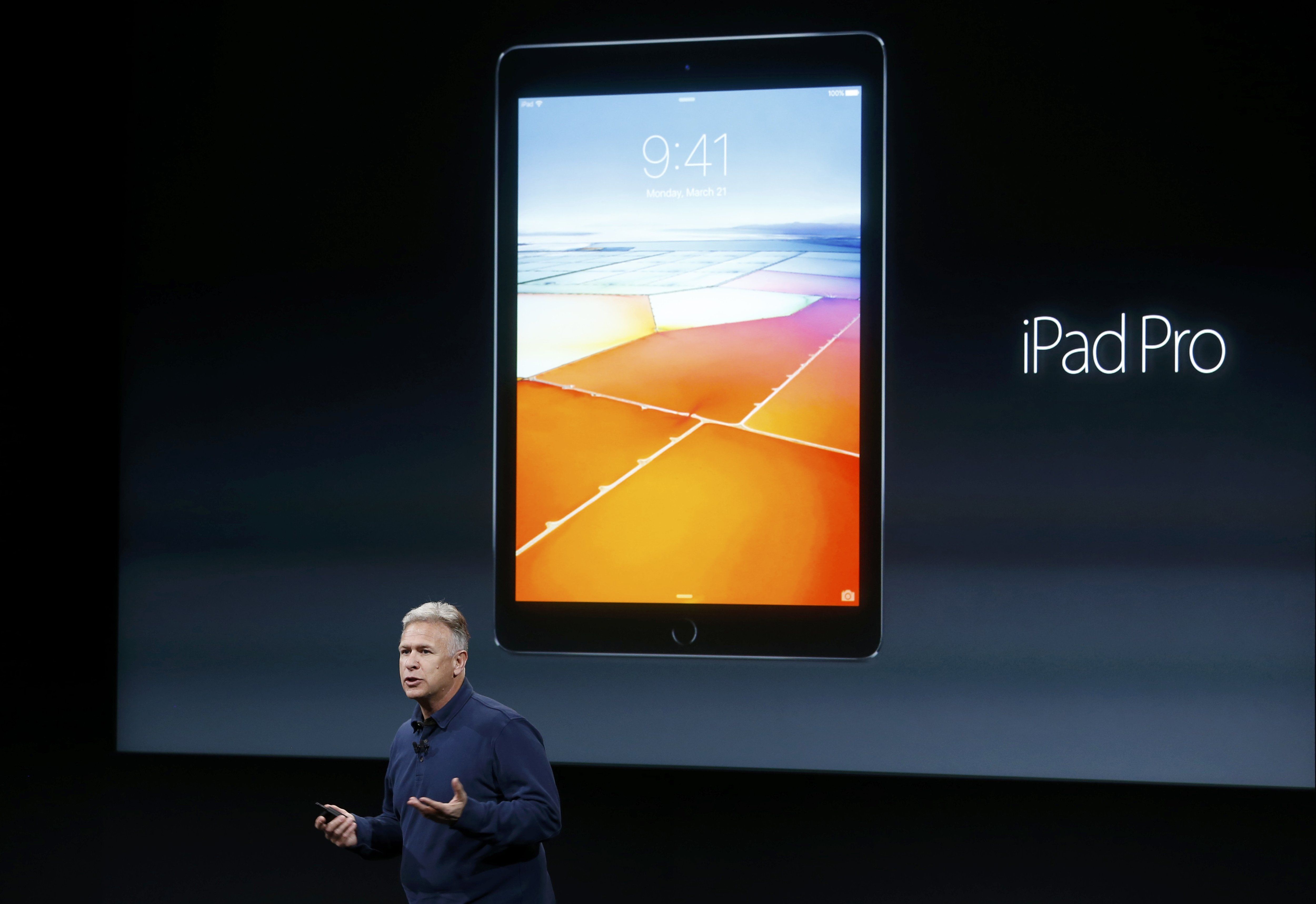 Фил Шиллер представил 9,7-дюймовый iPad Pro — меньшую версию первого iPad Pro. За всё время было продано более 200 миллионов iPad такого размера. Вице-президент Apple отметил, что, по его данным, многие пользователи переходят на iPad Pro с Windows, при чём на данный момент в обращении находится более 600 млн ПК старше пяти лет. Шиллер считает, что новый iPad станет хорошей заменой таким компьютерам. В App Store загружено уже более миллиона приложений для iPad. В дисплее нового iPad Pro используются те же материалы, что и в большом iPad Pro. Он поддерживает функцию True Tone благодаря сенсорам, которые определяют интенсивность внешнего освещения и подстраивают цветовую температуру экрана. 9,7-дюймовый iPad Pro снабжён четырьмя динамиками.
