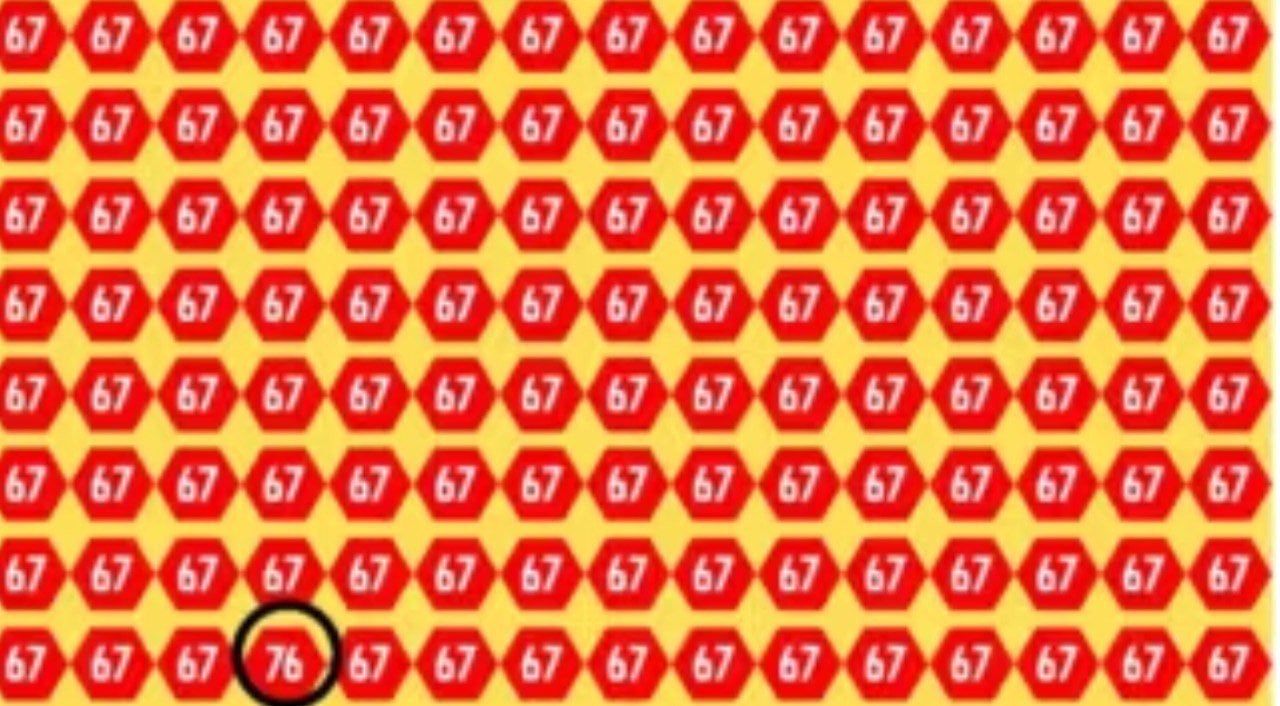Эта оптическая головоломка стала настоящим хитом в Сети, бросая вызов даже самым внимательным людям. Суть задачи проста: среди повторяющейся последовательности чисел «67» спрятано одно-единственное число «76».