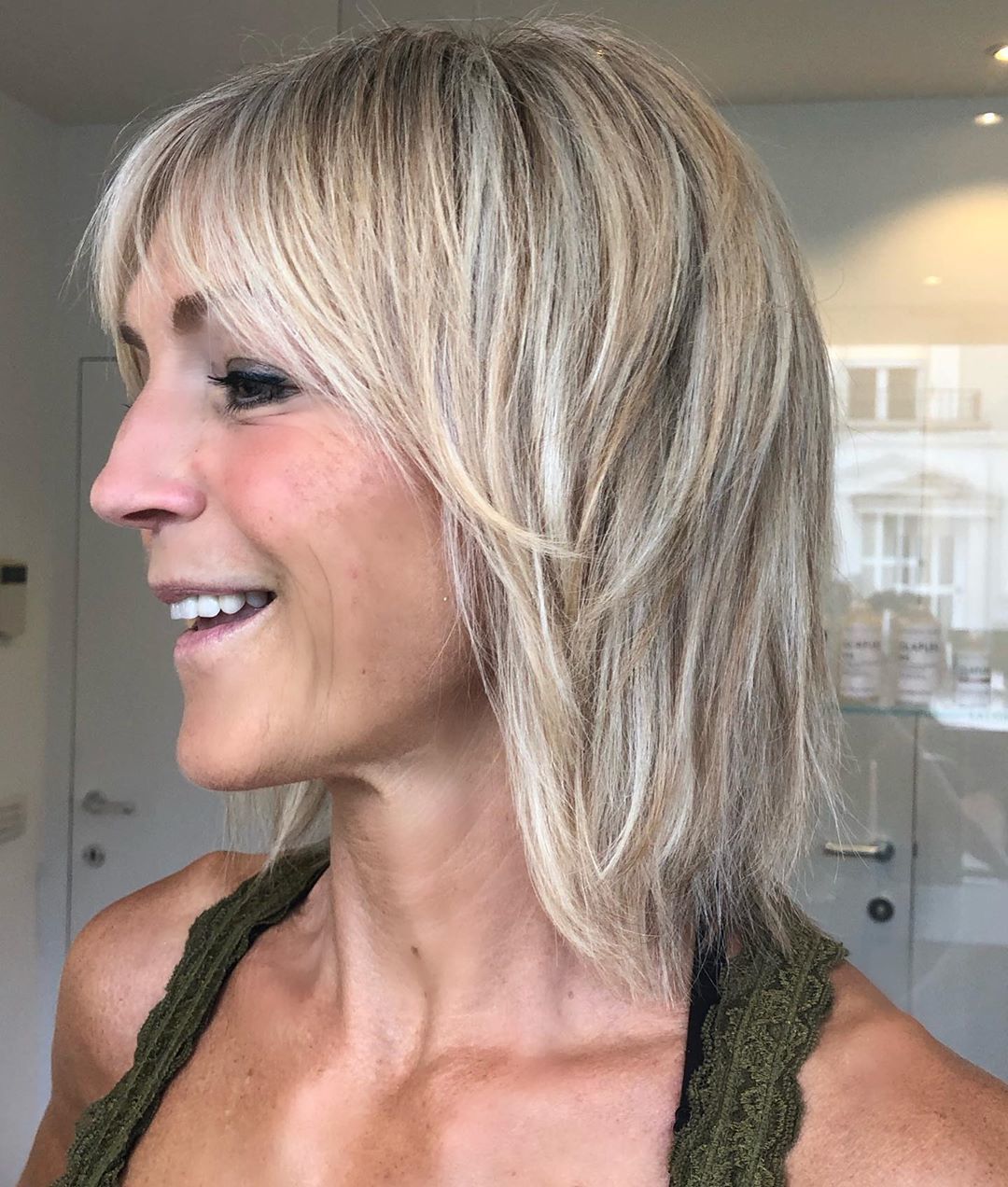 Средняя длина. Самый безопасный и универсальный вариант. Пряди хорошо двигаются во время ходьбы, создают легкость и не отягощают черты лица. Такие прически будут добавлять мягкости образу и создавать легкие волны для объема. Также они подходят абсолютно всем, поэтому это идеальный вариант для тех, кто хочет омолодиться.