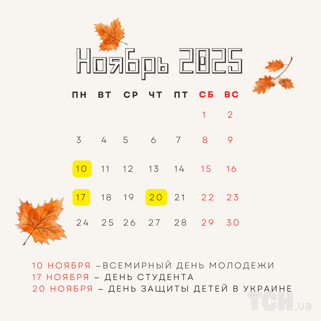 Рабочие дни и важные события в ноябре 2025 года: когда украинцы будут отдыхать, что праздновать