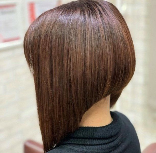 Этот вариант каре лучше акцентировать косой длинной челкой, которая сделает взгляд выразительным, а общий аутфит – элегантным и совершенным.